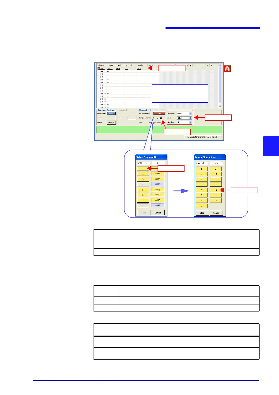 Example: Configure the alarm settings so that the voltage range of channel 13 (channel 1-