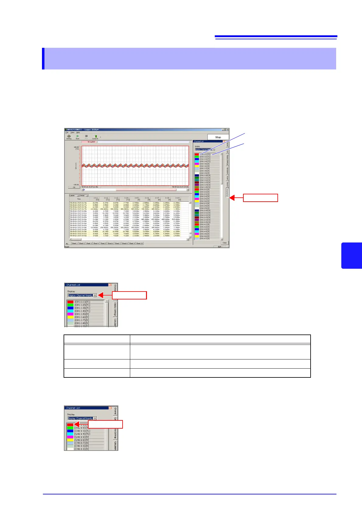 3. When other than the ALL sheet is selected, channel display can be set to OFF.