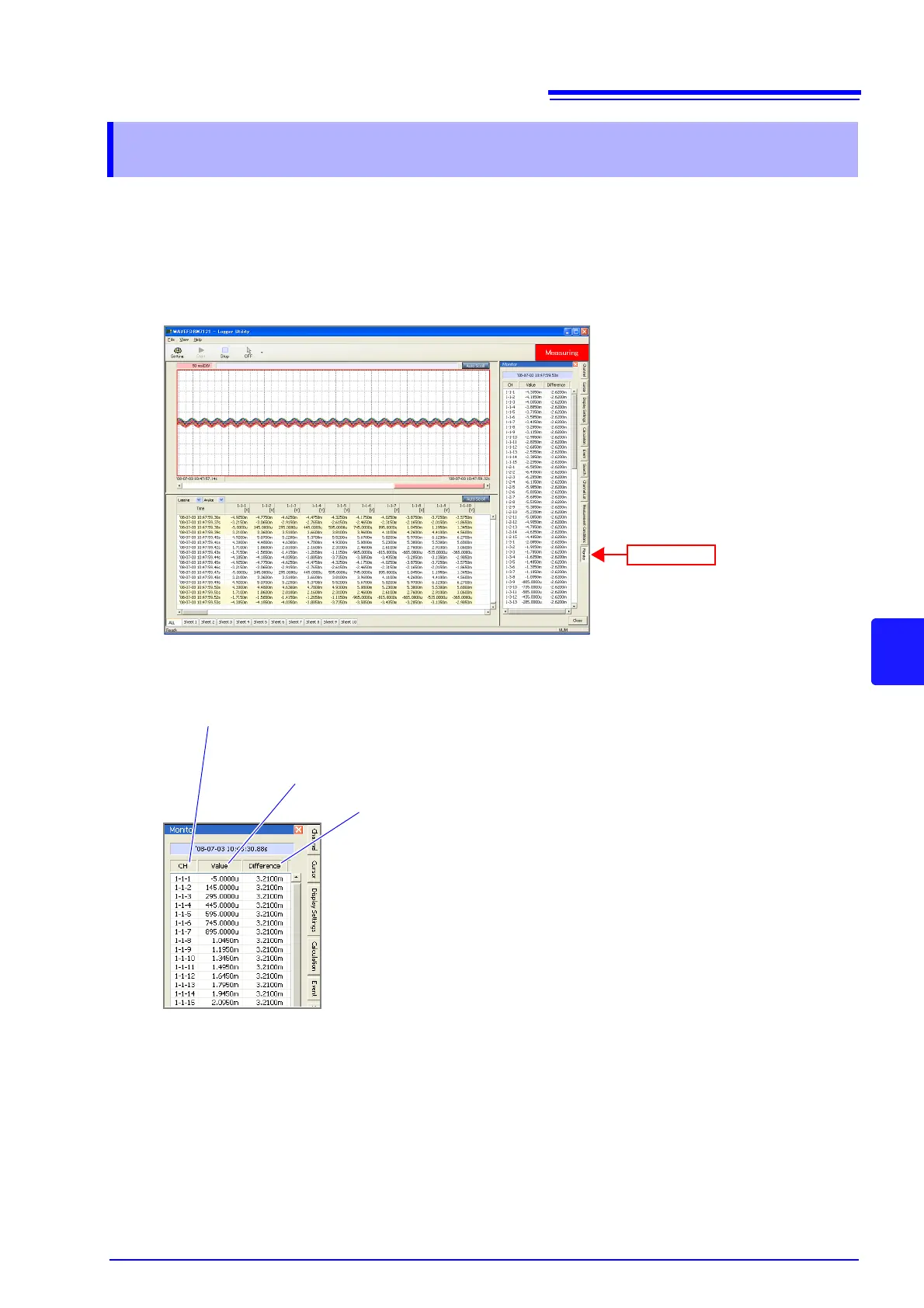 Instantaneous values of each channel are displayed in real time as digital values. The [Monitor] tab is only dis-