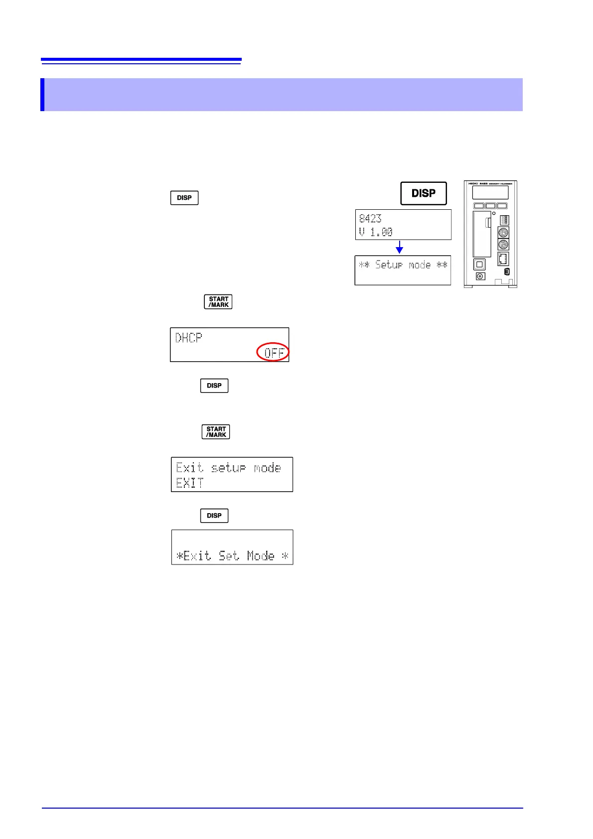 2. Press multiple times until the following DHCP setting screen