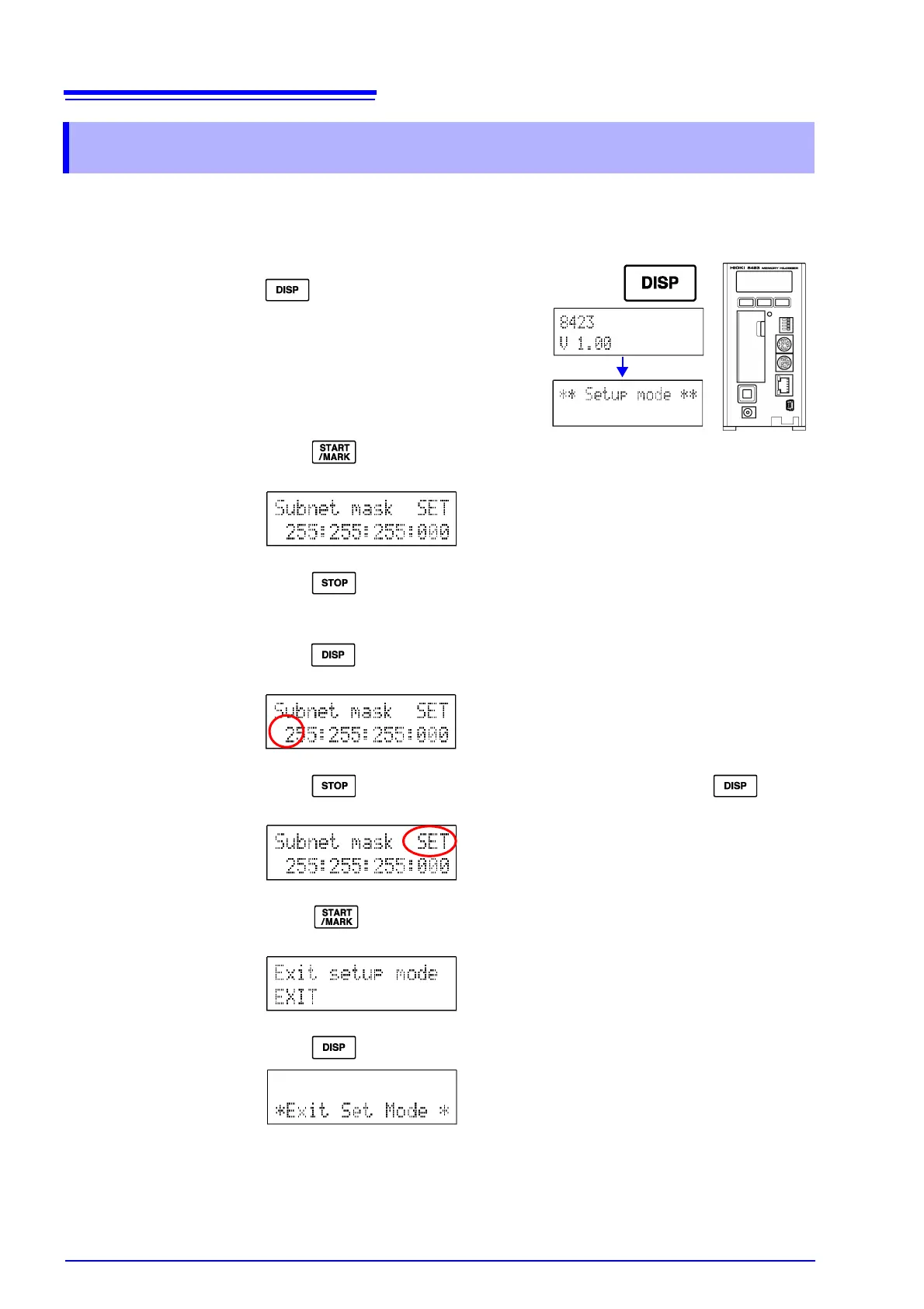 2. Press multiple times until the following subnet mask setting screen