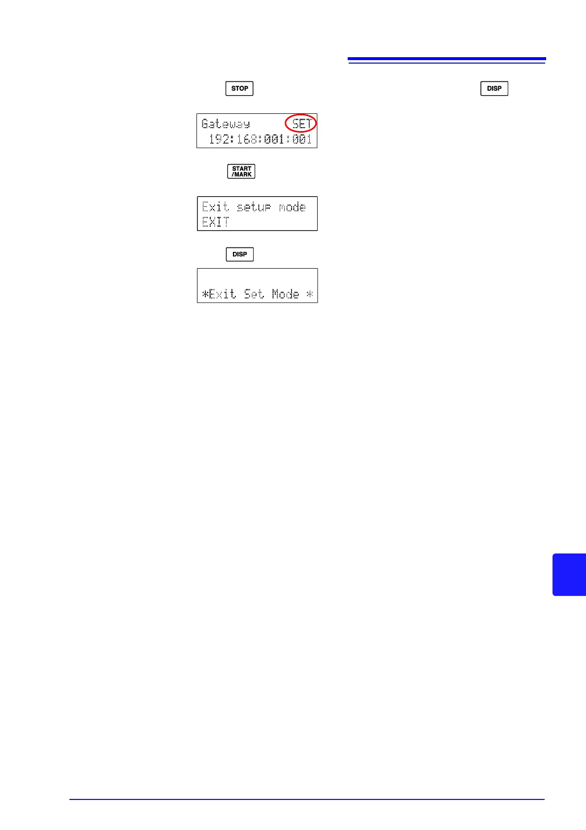 8. Press multiple times until the following setting mode end screen