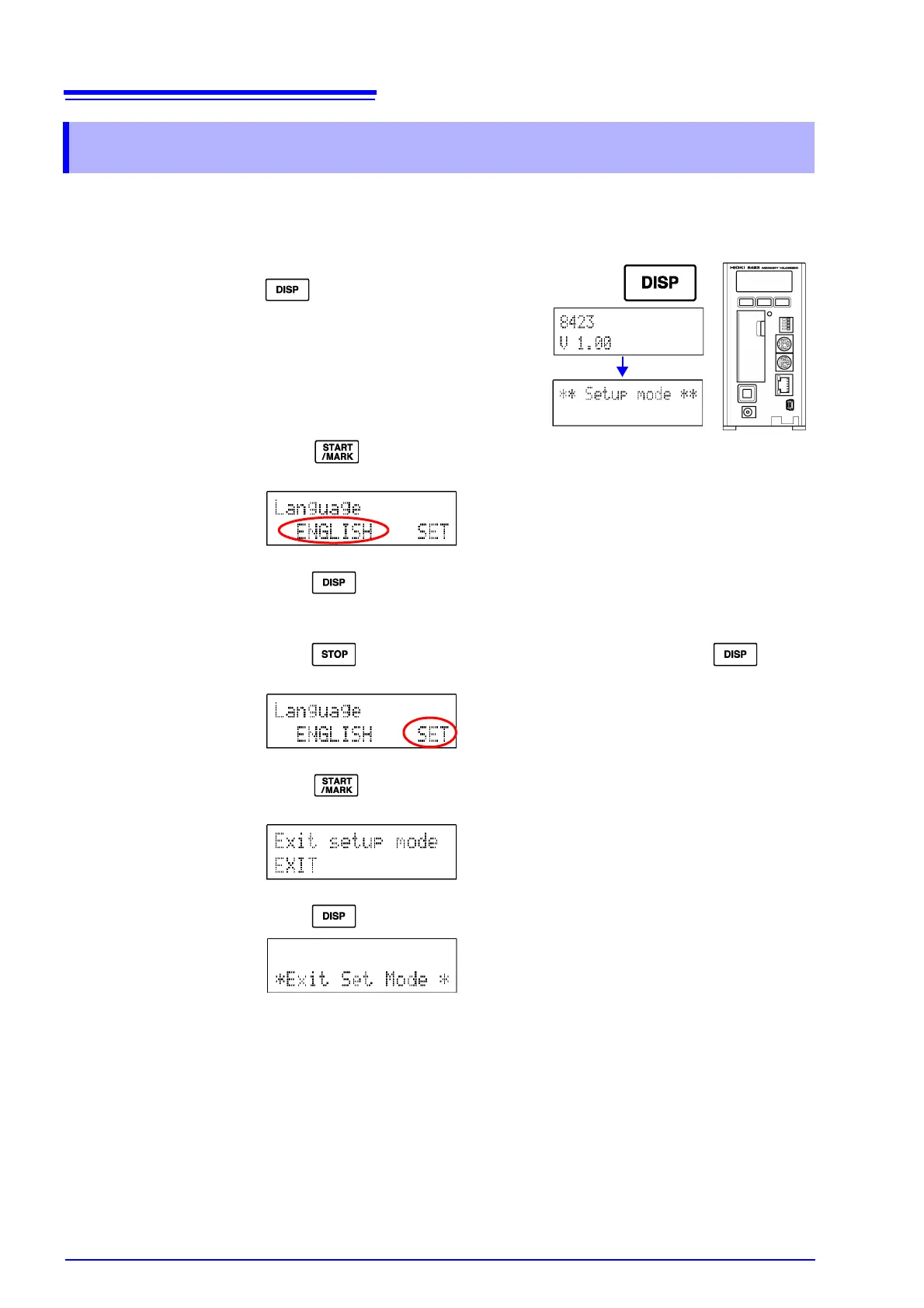 This section describes setting the display language of the instrument.