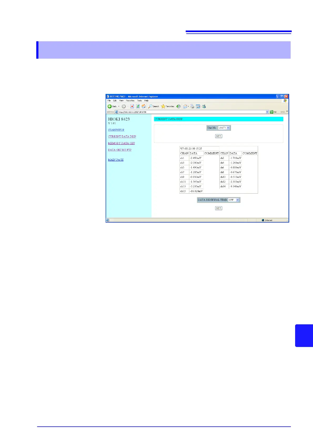 • You can monitor the data obtained for each channel at the recording interval