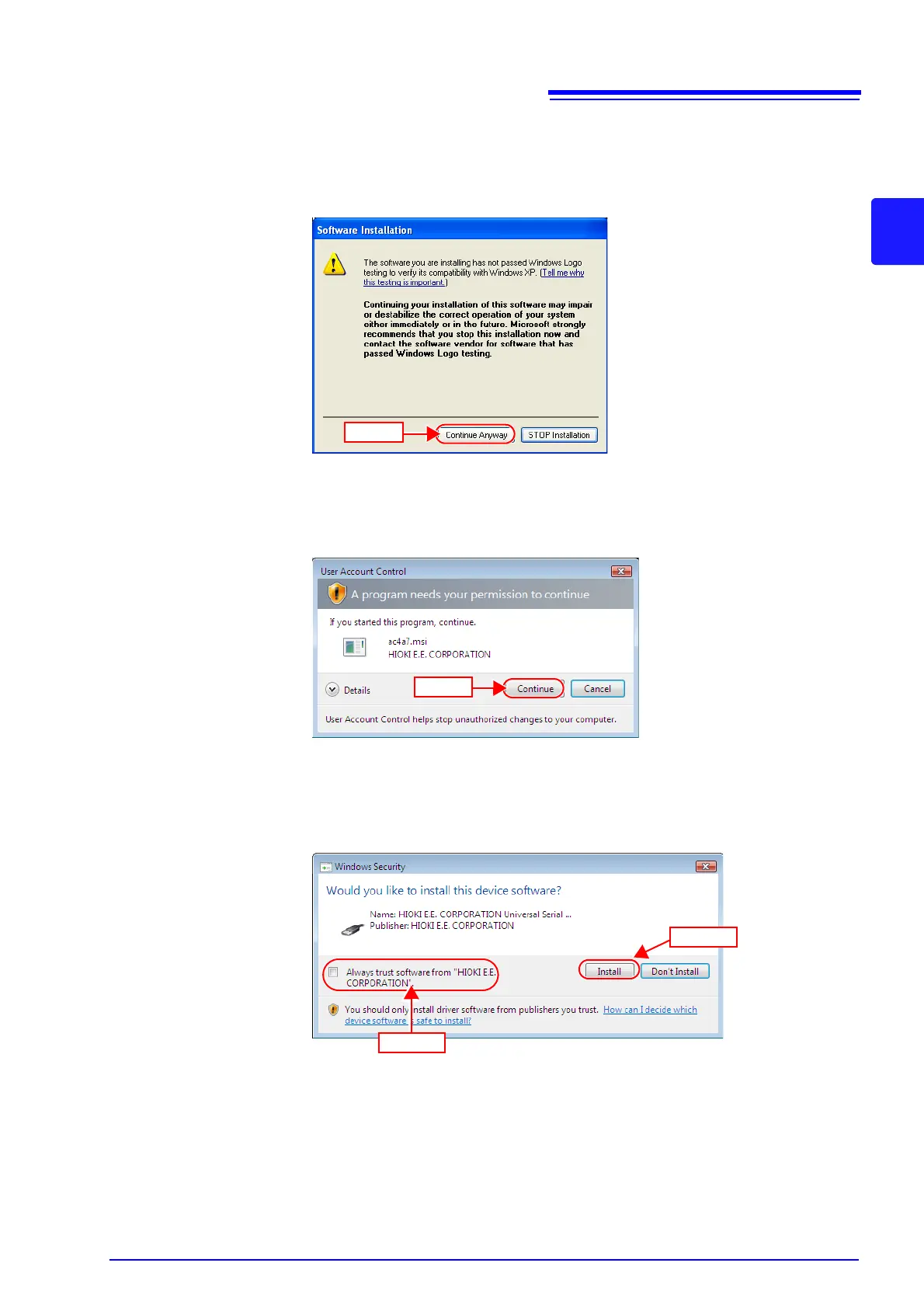 “HIOKI E.E. CORPORATION”] and click [Install] to continue.