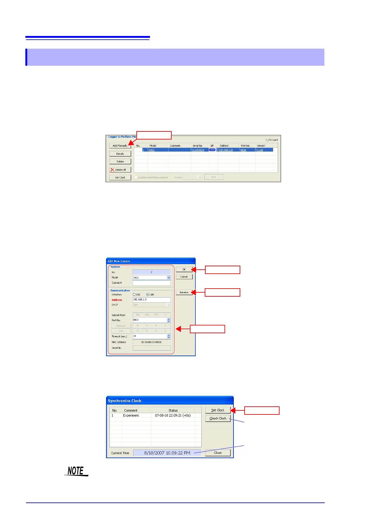 of LAN. It is not possible to register duplicate instruments, such as loggers with