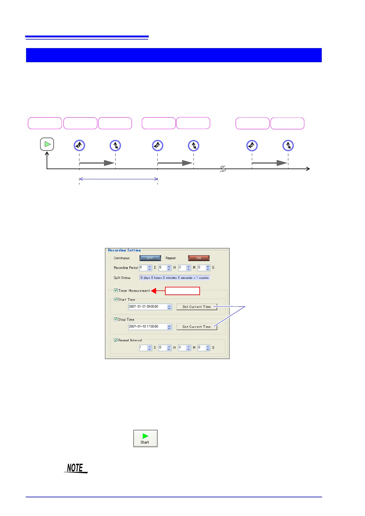 ing is possible. Specify a measurement start time and a measurement stop time,