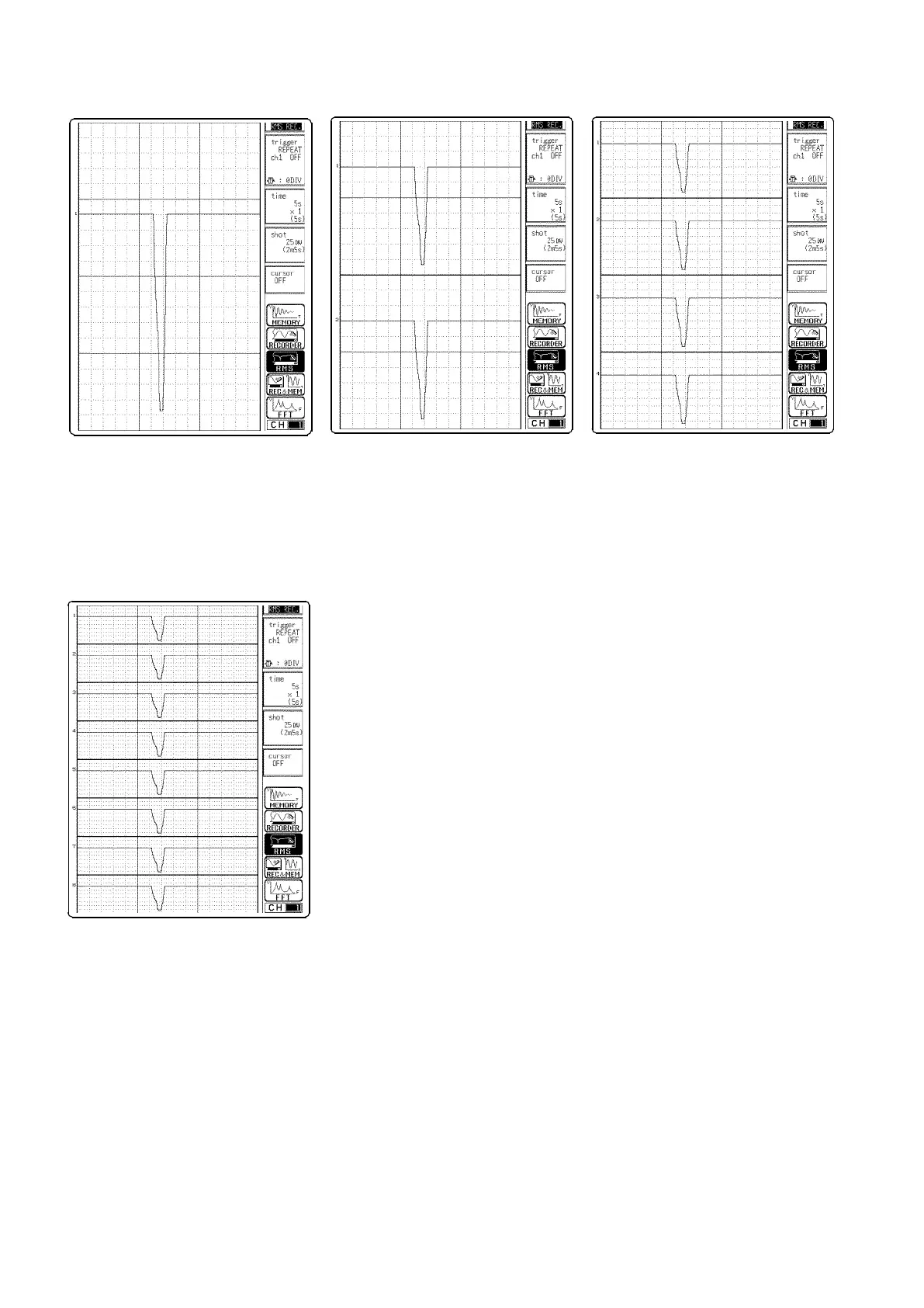 Record as sixteen graphs. (At the most, 1 analog + 2 logic signals)