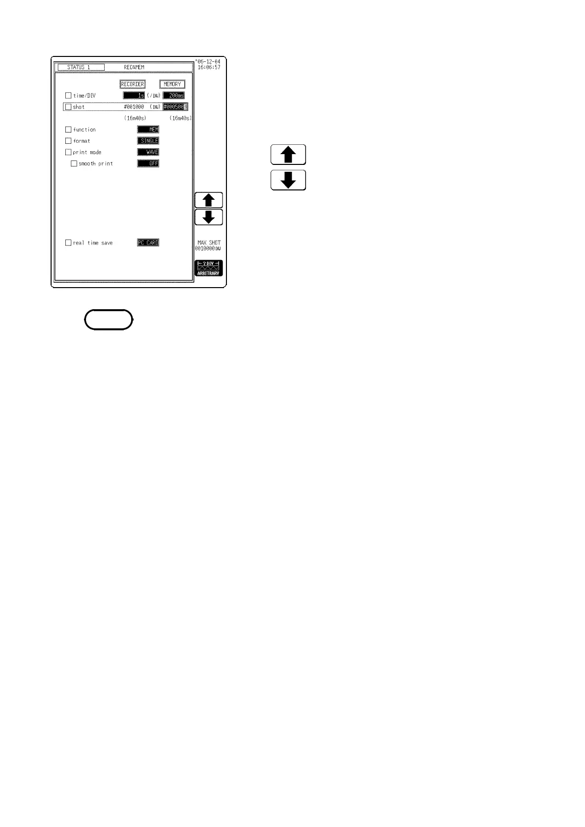 recorder time axis range, memory time axis range and memory recording