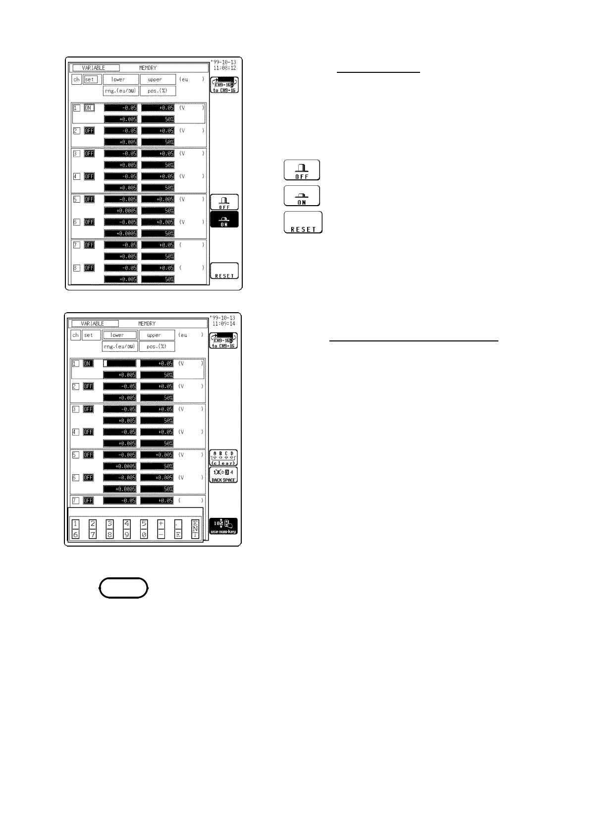 screen, the values of the enabled channels can be changed.