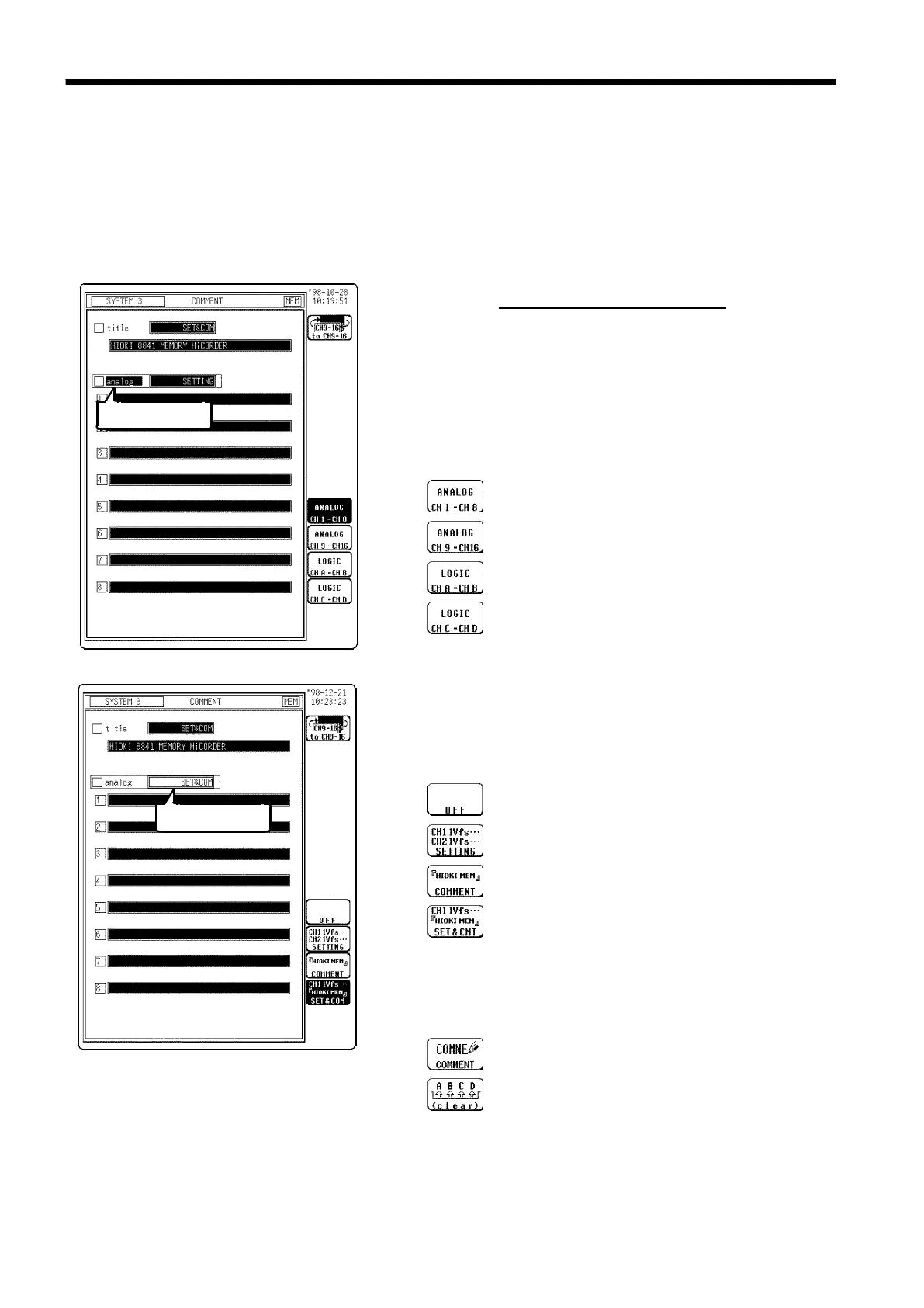each channel. If "COMMENT" or "SET & COM" is