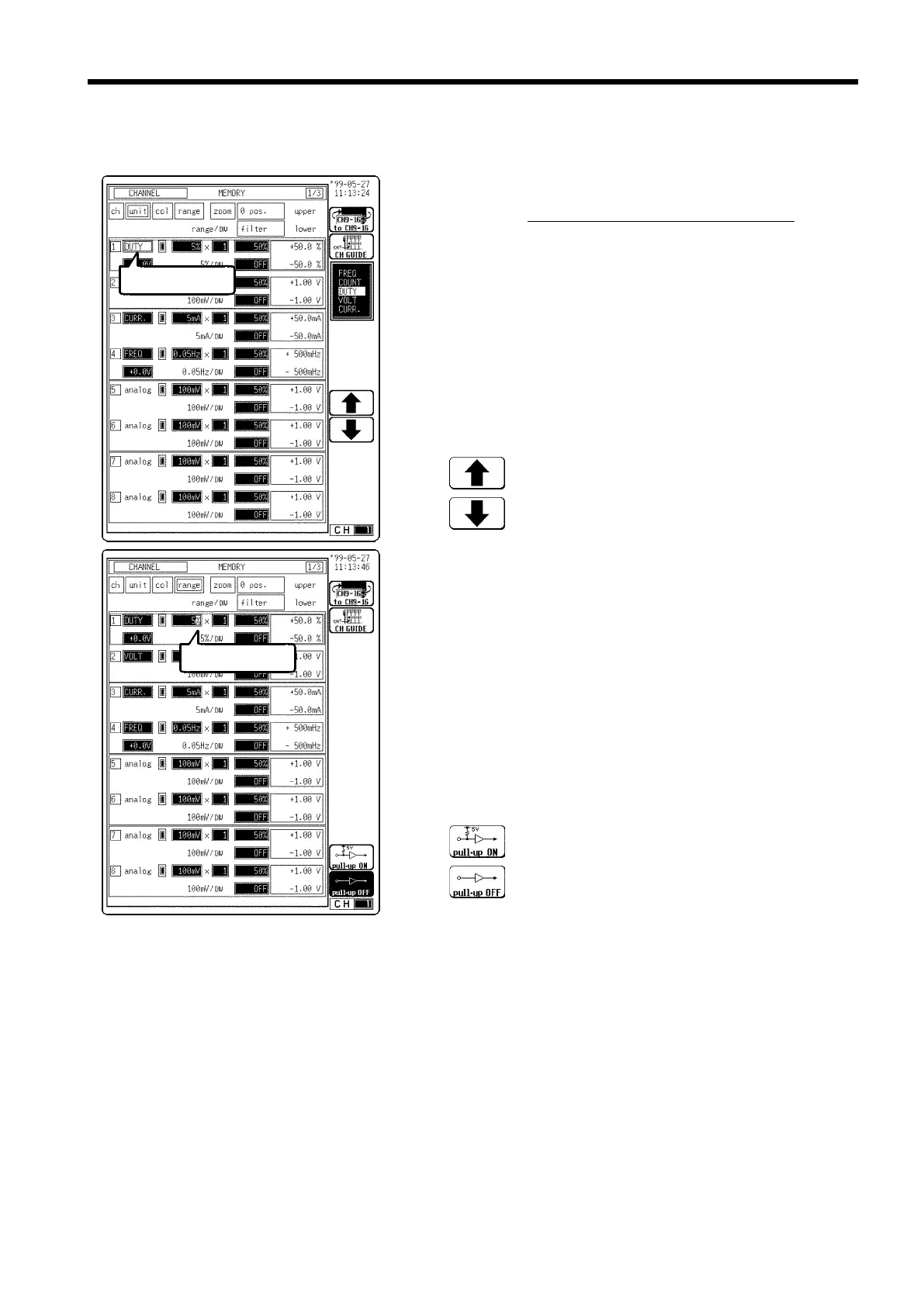 1. Display the CHANNEL or Waveform display screen.
