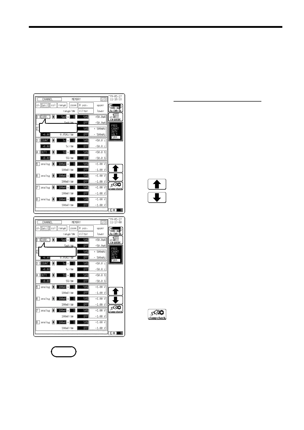 1. Display the CHANNEL or Waveform display screen.