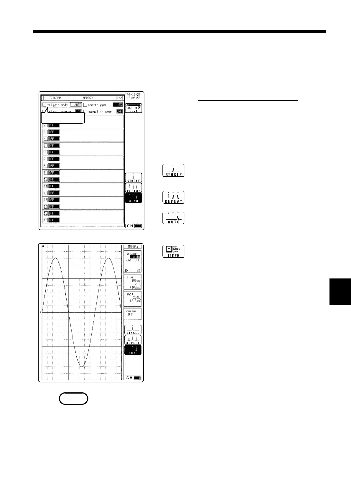The trigger mode setting of the recorder and memory function (REC&MEM)