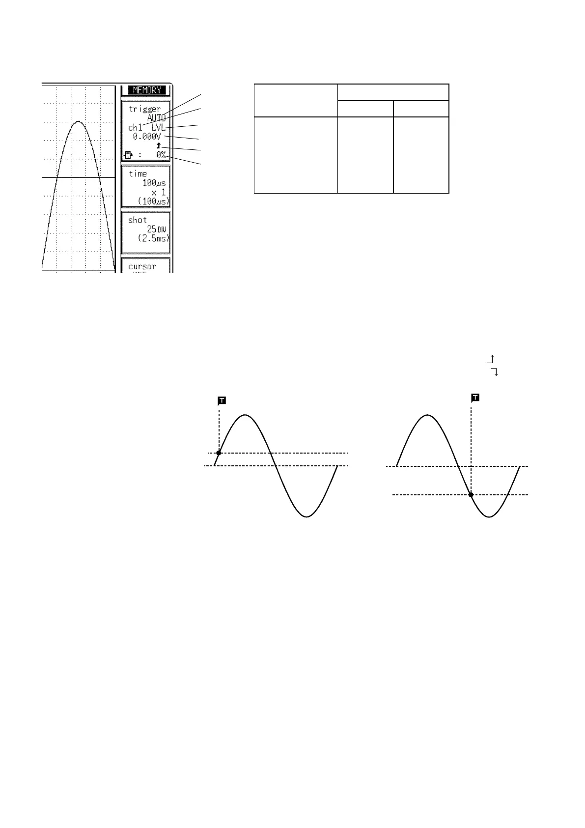 is above or below the trigger level. With this setting, triggering will not
