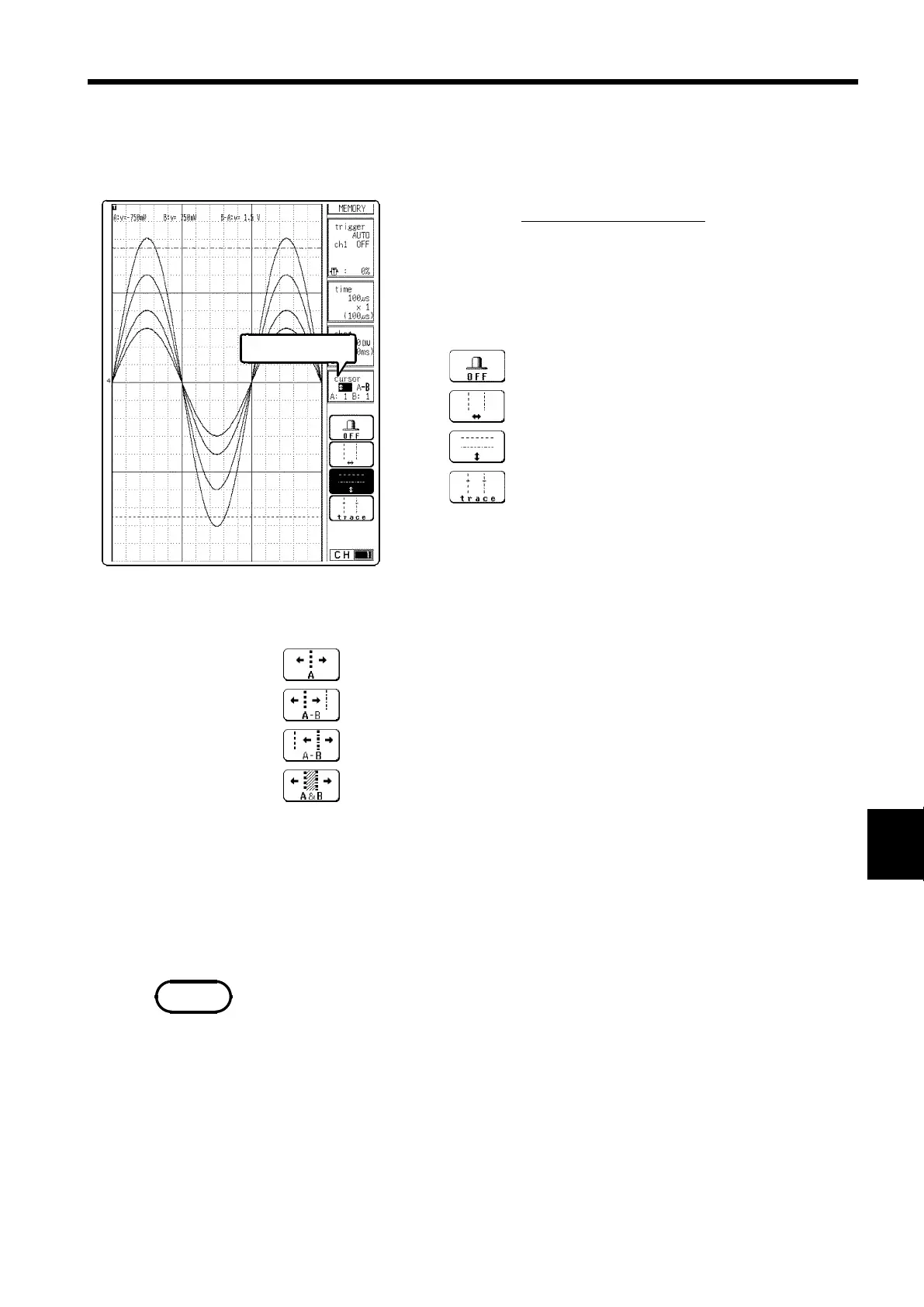 "cursor". Move the flashing cursor to set the waveform channels from