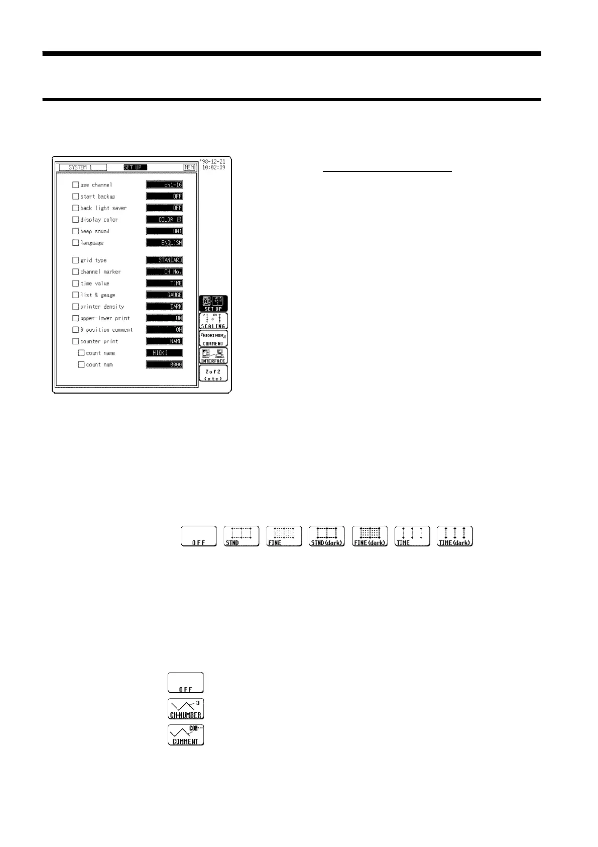 ・Selects the type of grid shown on the Waveform display screen and drawn on