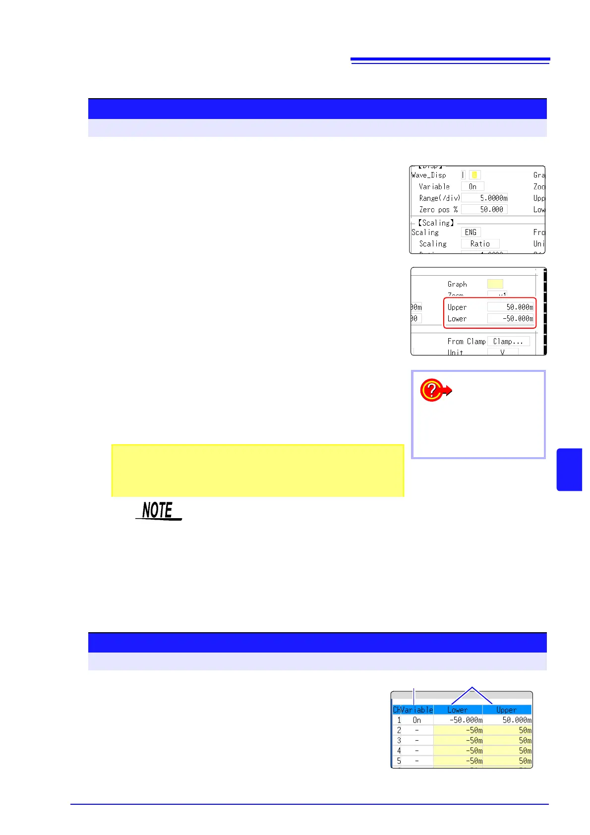 • When upper and lower values are set, waveforms can be displayed at full