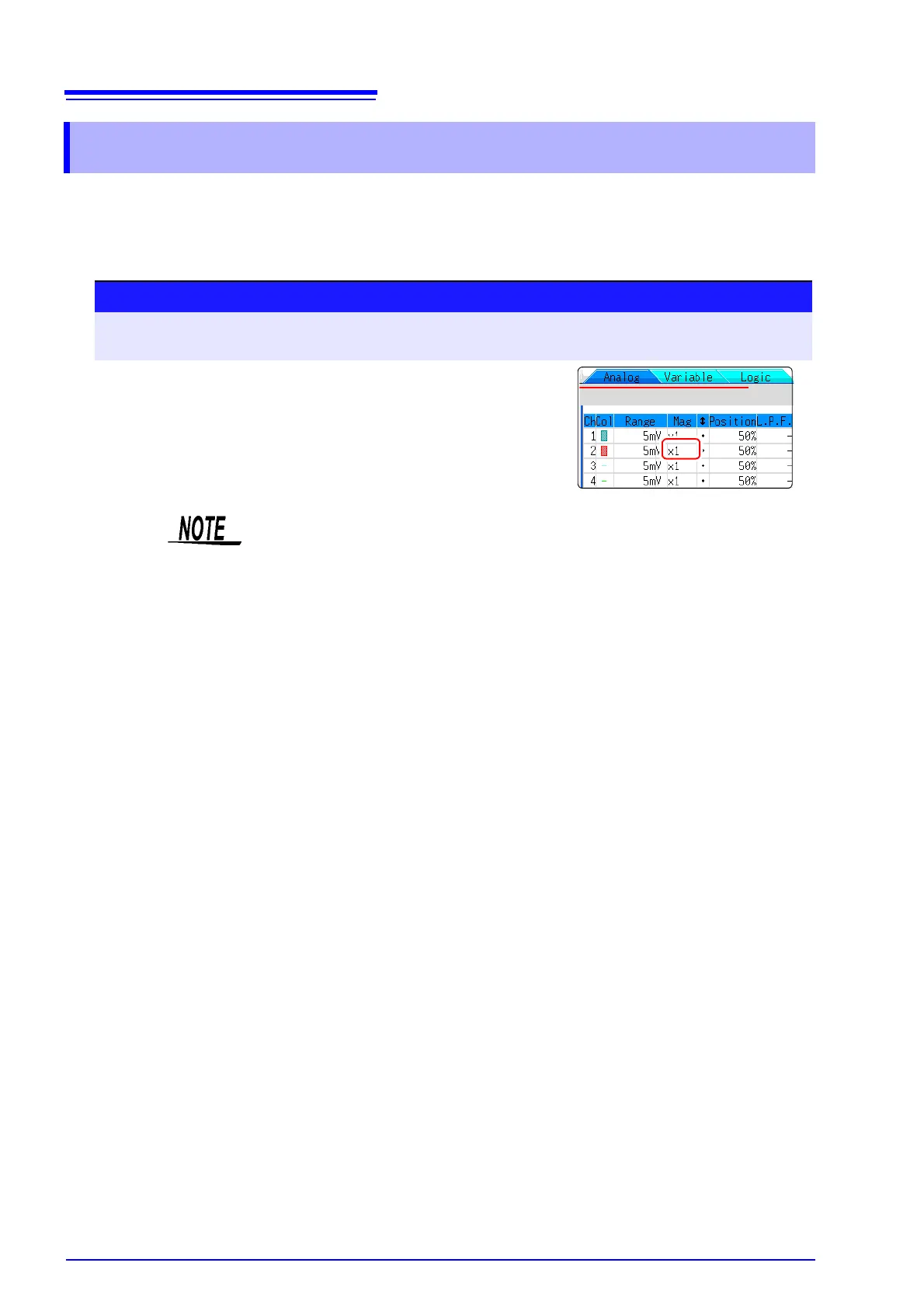 To open the screen: Press the DISP key → Waveform screen → Press the CH.SET key → Channel settings