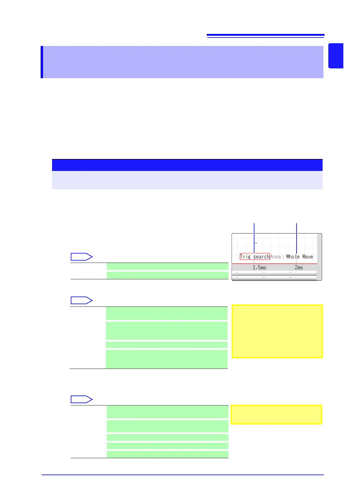 Locations that match the set trigger criteria in the measurement data are searched for and displayed