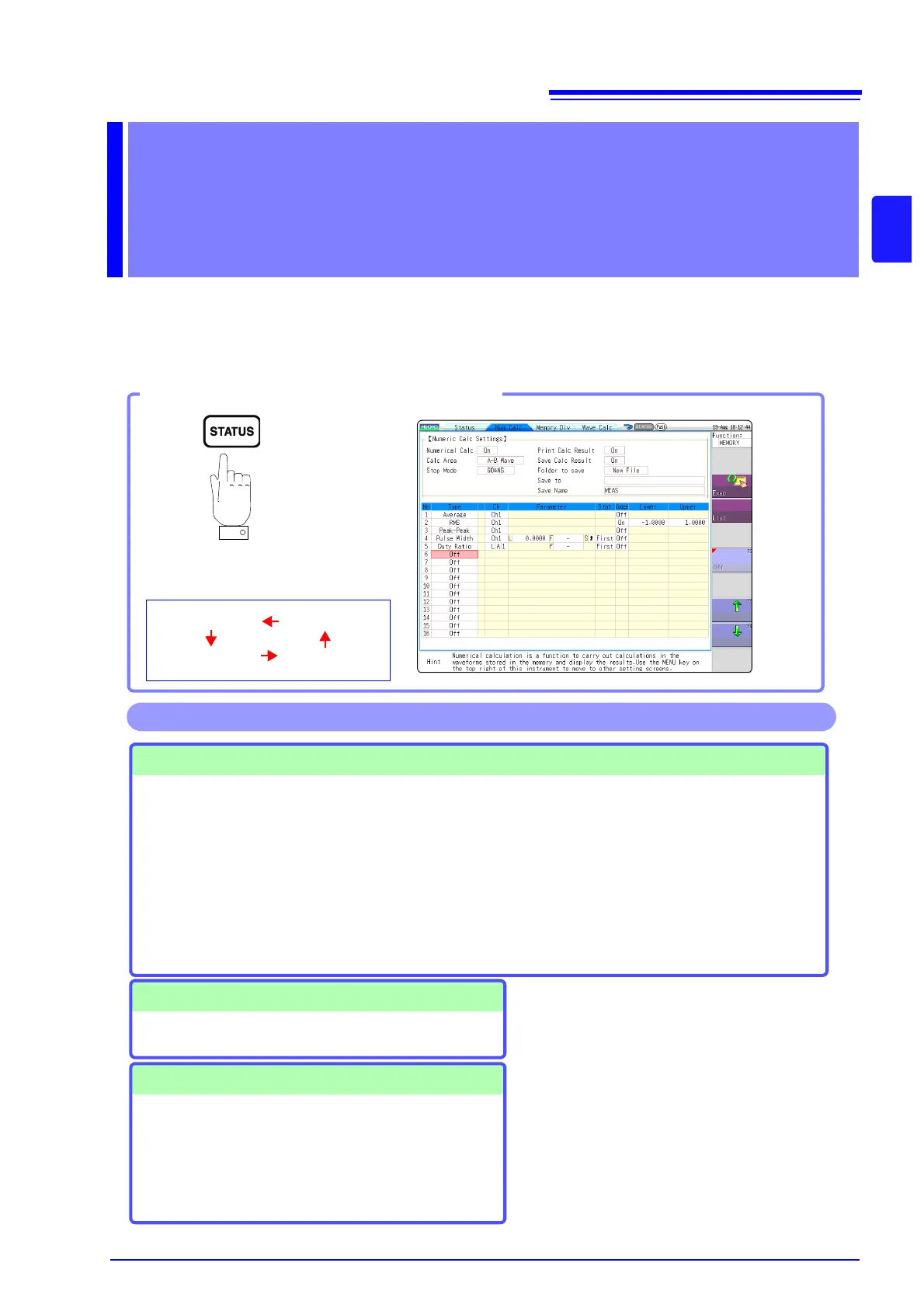 screen. Numerical calculation settings are made on the Status screen - [Num Calc] sheet.