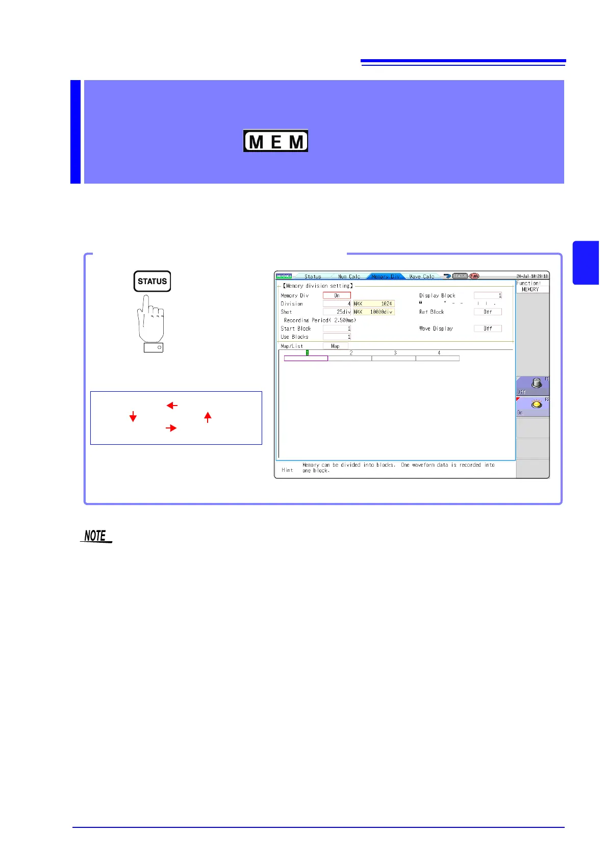 Memory division settings are made on the Status screen - [Memory Div] sheet.