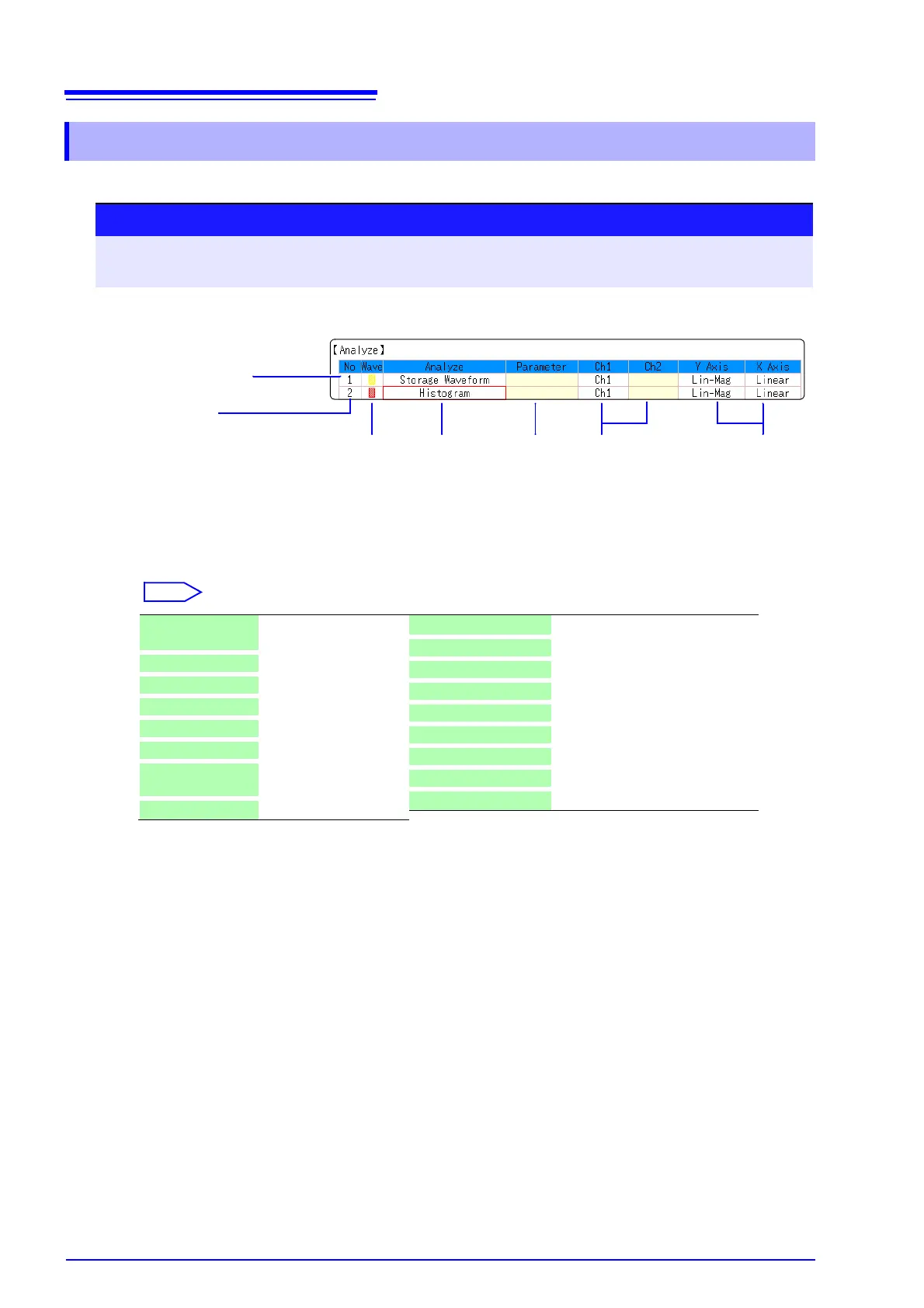Move the cursor to the [Analyze] column of the Analysis No. to set.