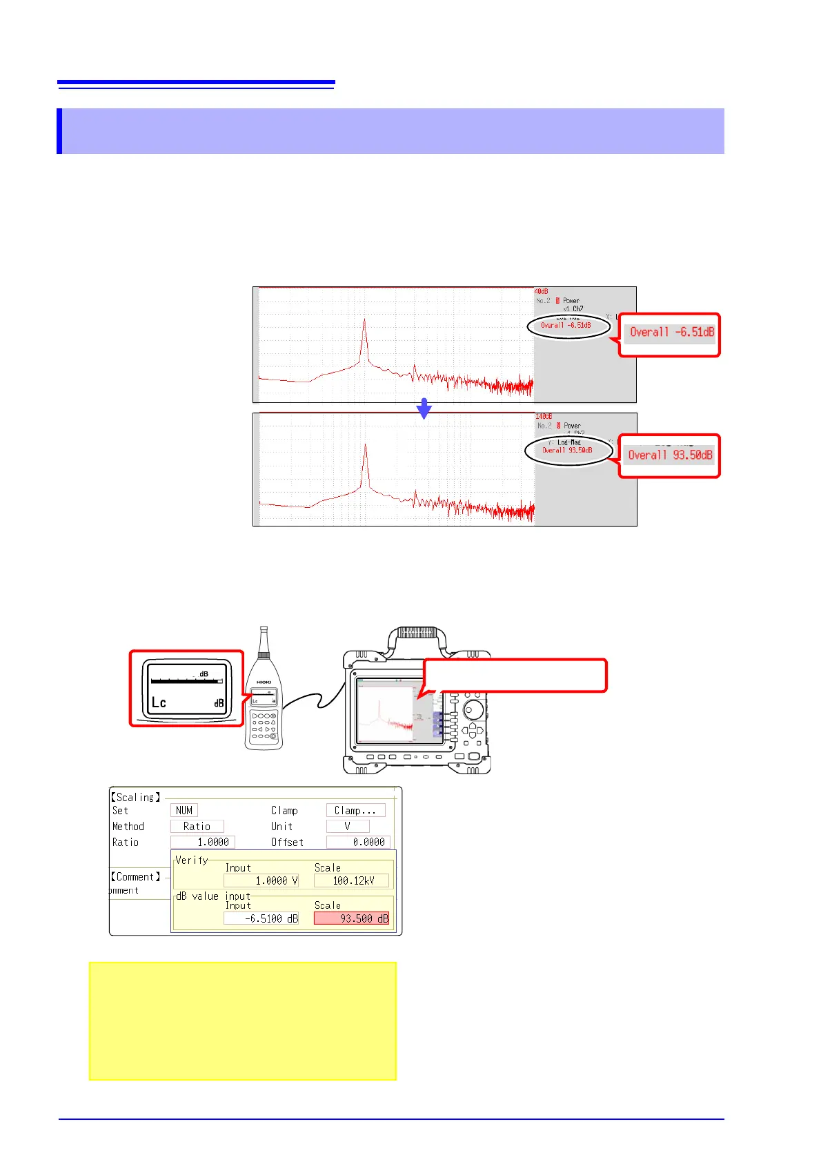 In a case where a sound level meter displays 93.5 dB and the overall value displayed on the Wave-