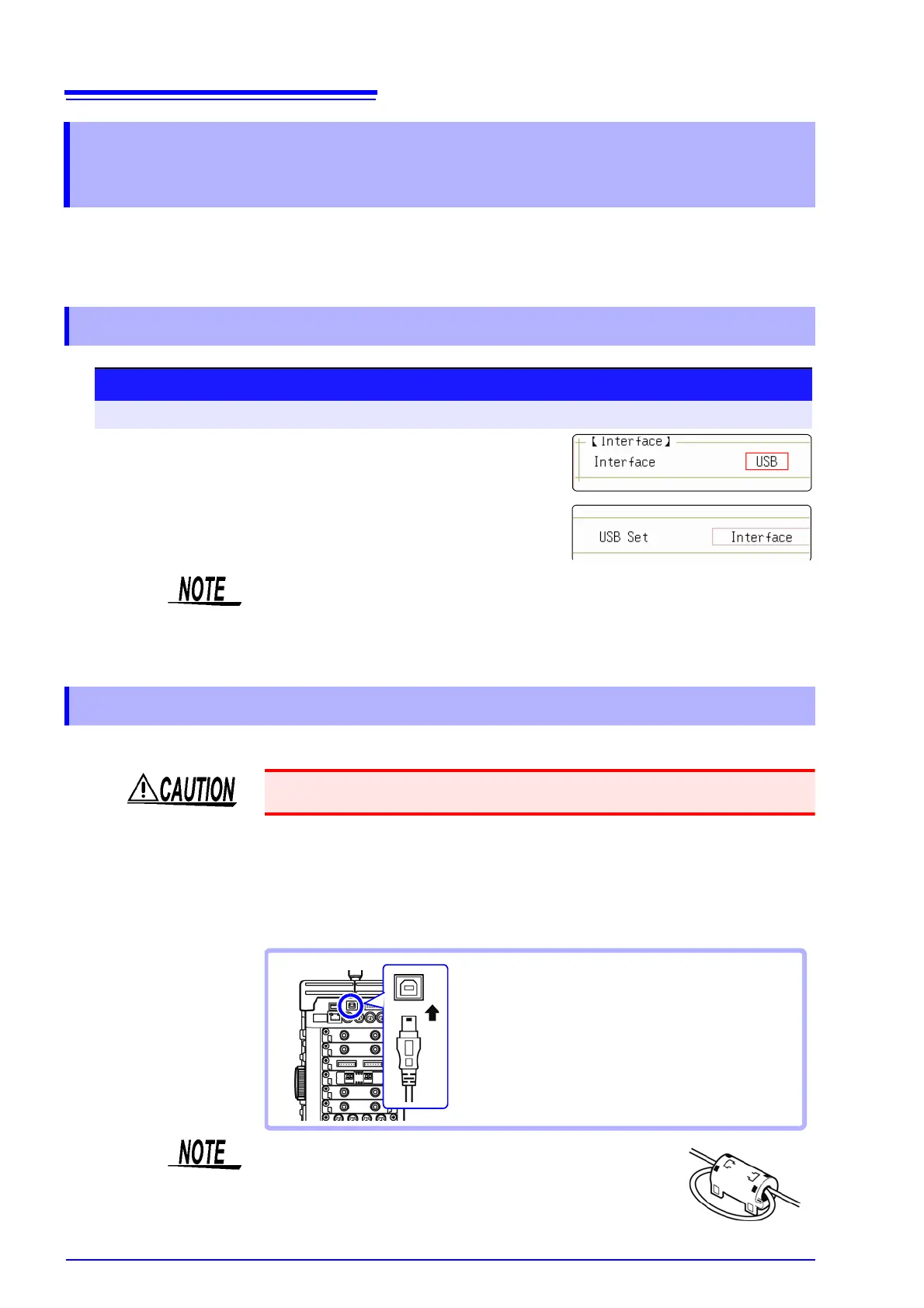 Do not plug in or unplug the USB cable while the instrument is operating.