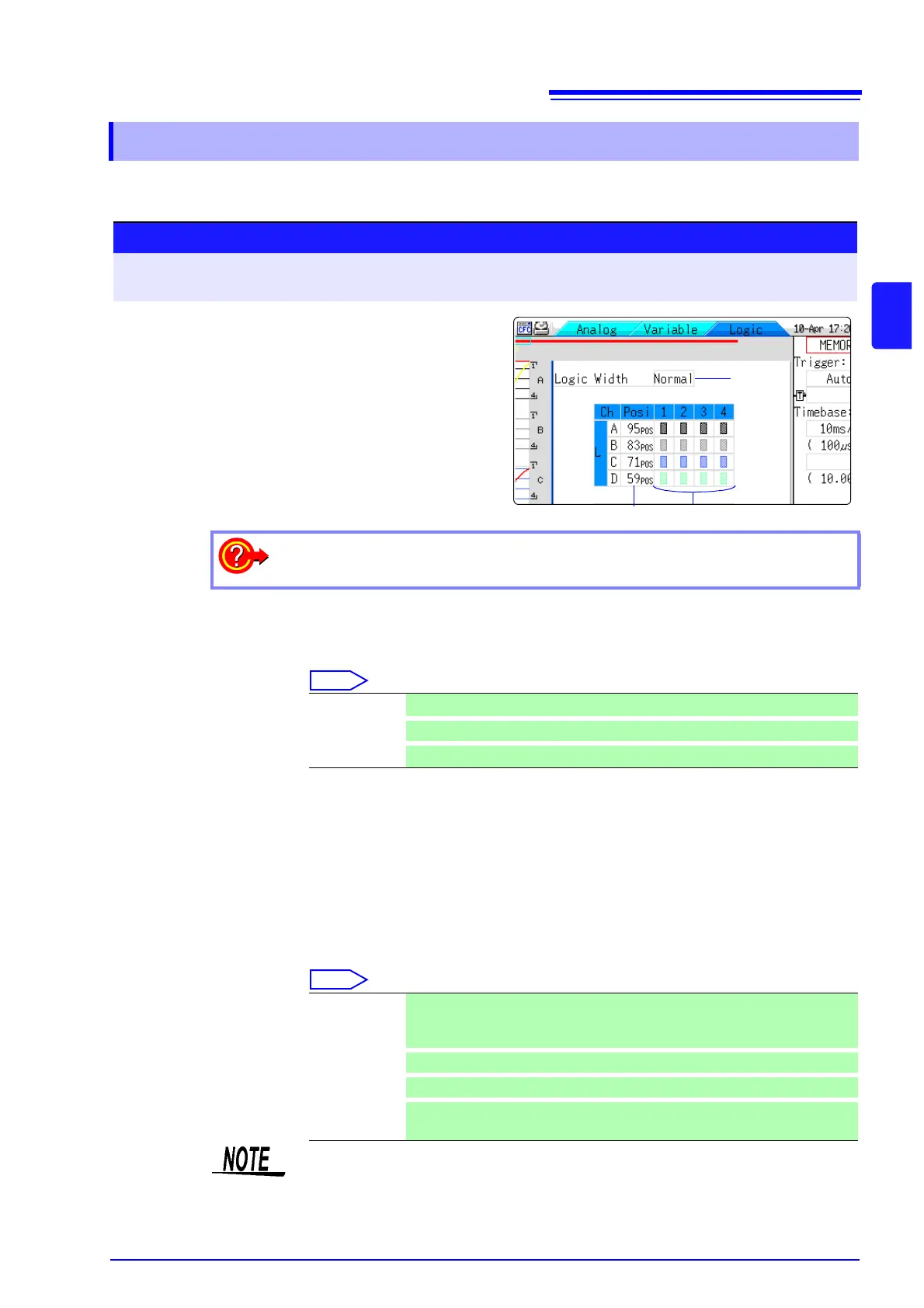 1. Logic Width Allows changing the display width of the logic waveform.