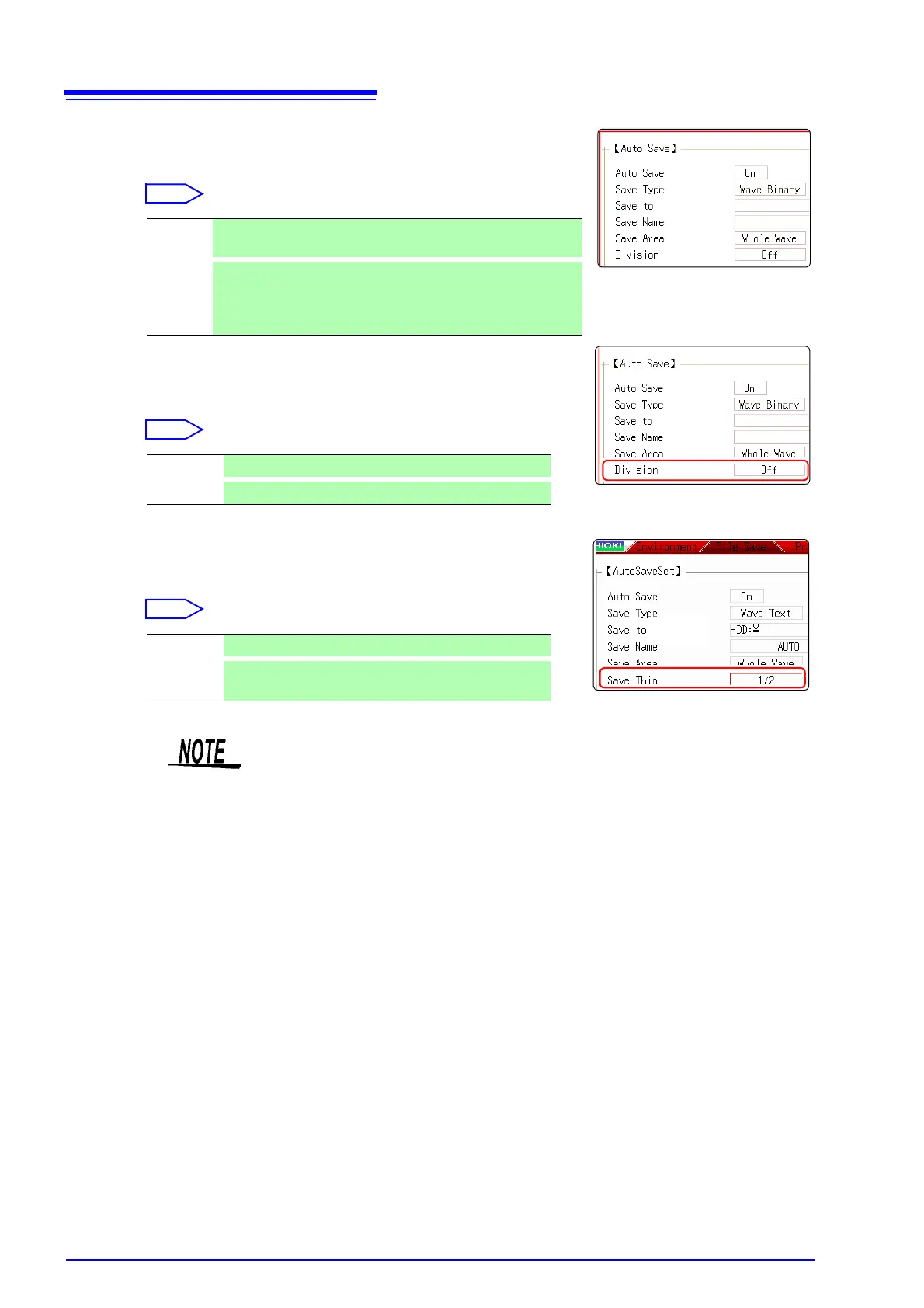 • Large quantities of waveform data can be divided and saved as multiple files.