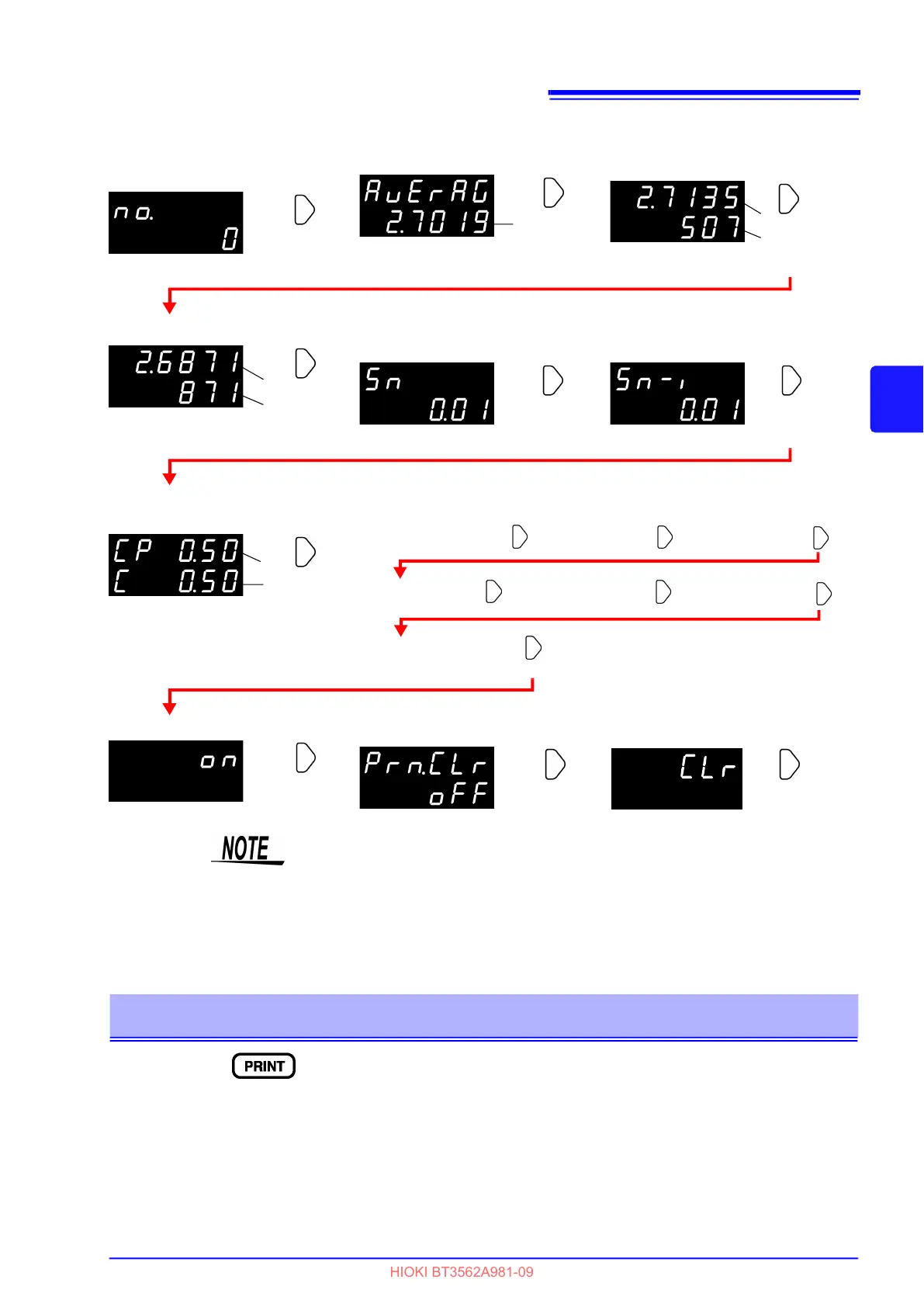 With the statistical calculation results displayed, press the PRINT key.