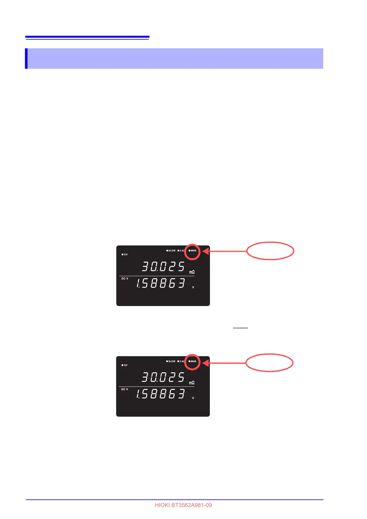 TRG command, the MEM indicator blinks once and the measured value is