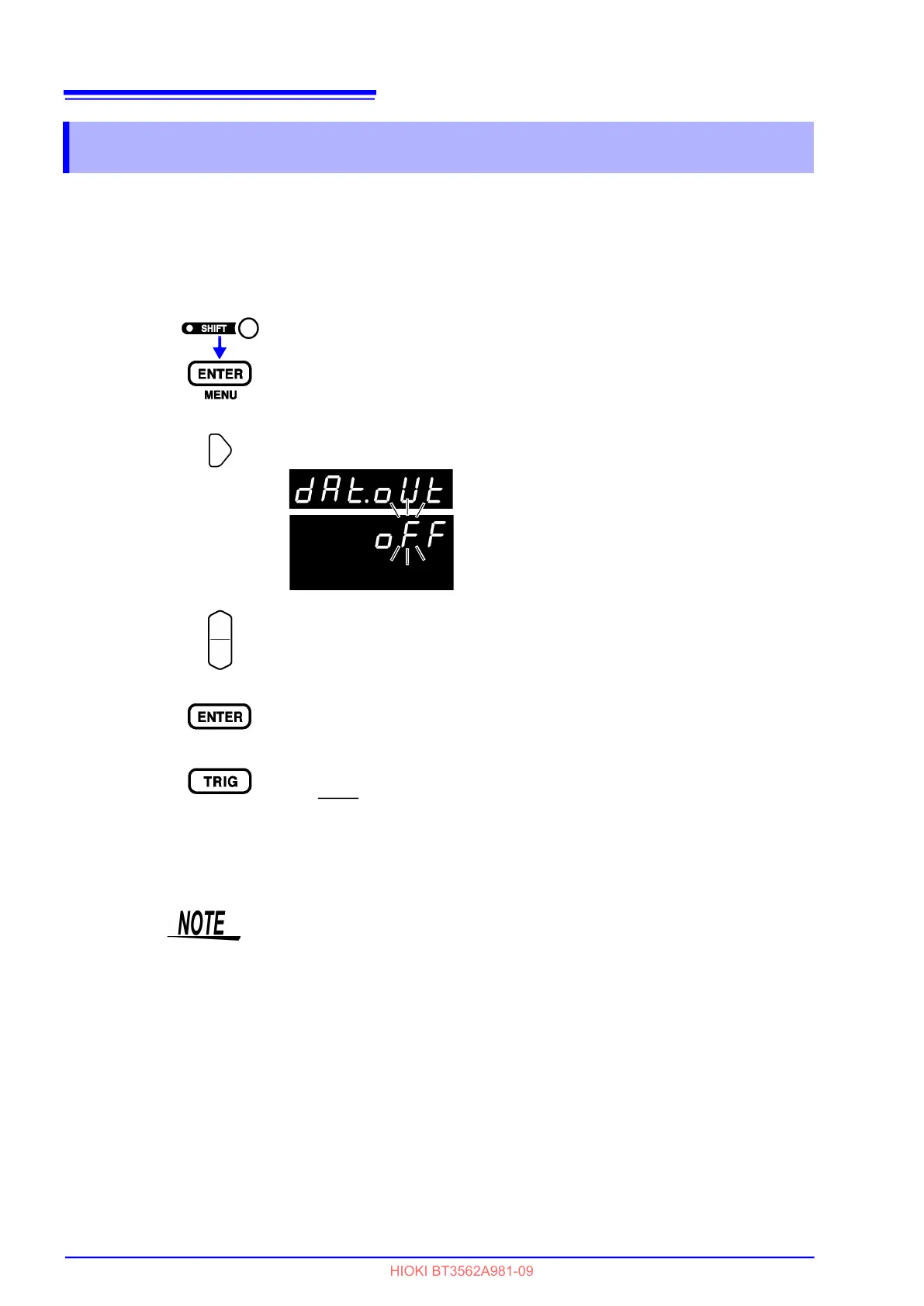 oFF........ disables the measurement value output function off.