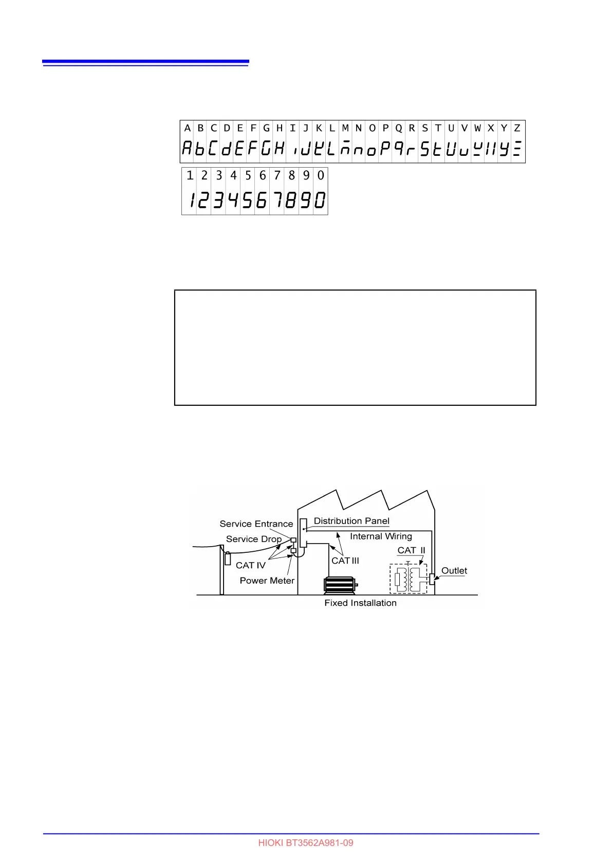 The screen of this instrument displays characters in the following manner.