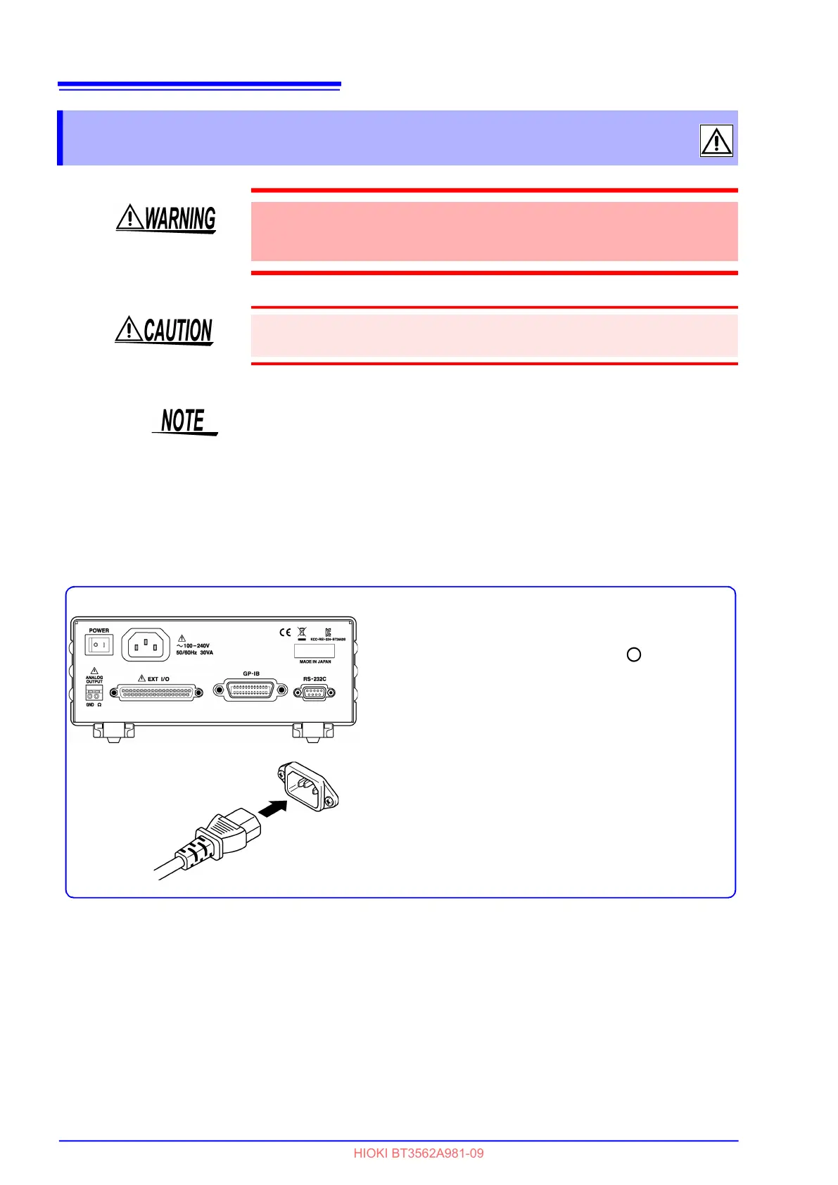 instrument, connect the power cord provided only to a 3-contact (two-conduc-