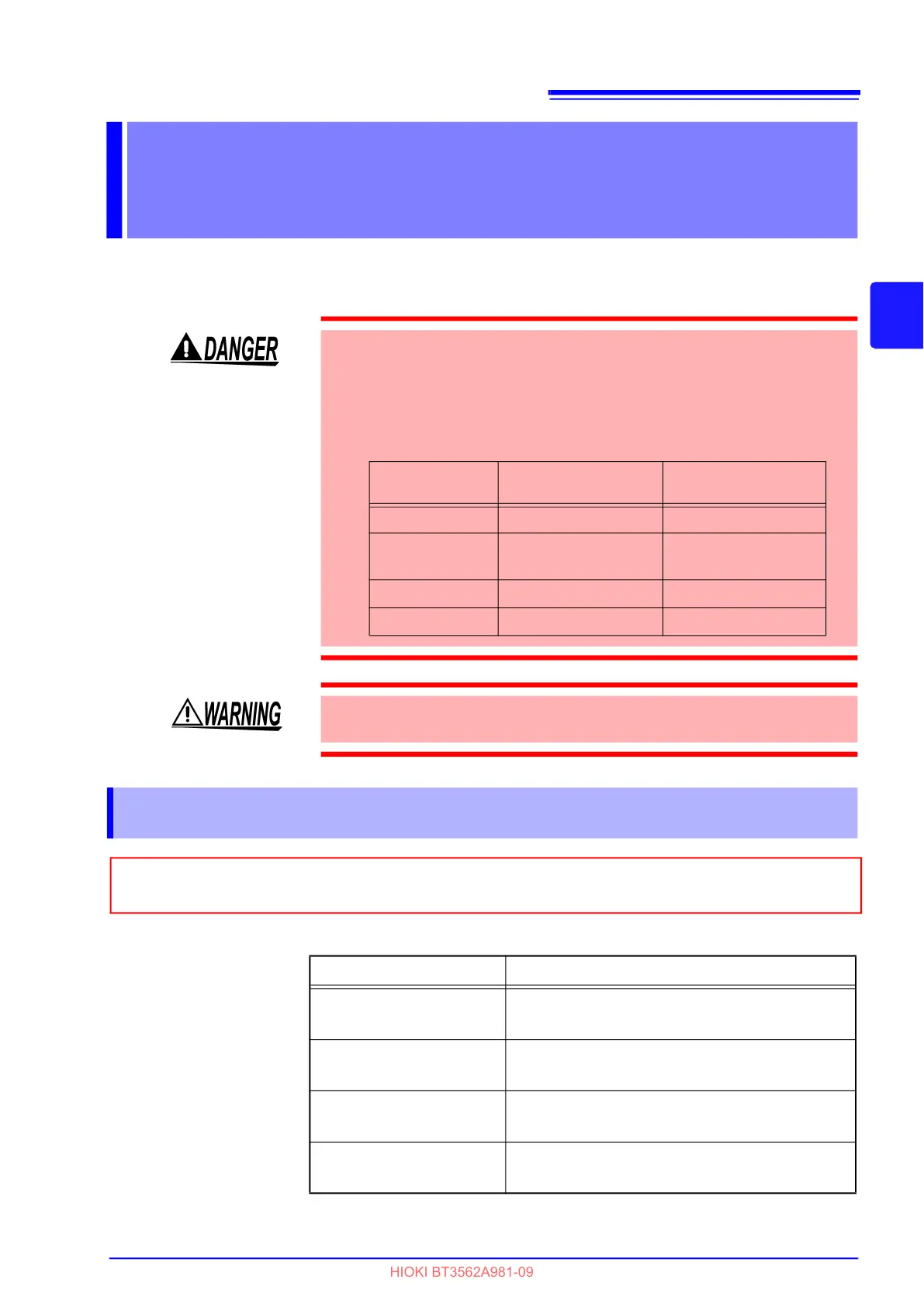 To prevent electrical shock, verify the ratings of the measurement leads before mea-
