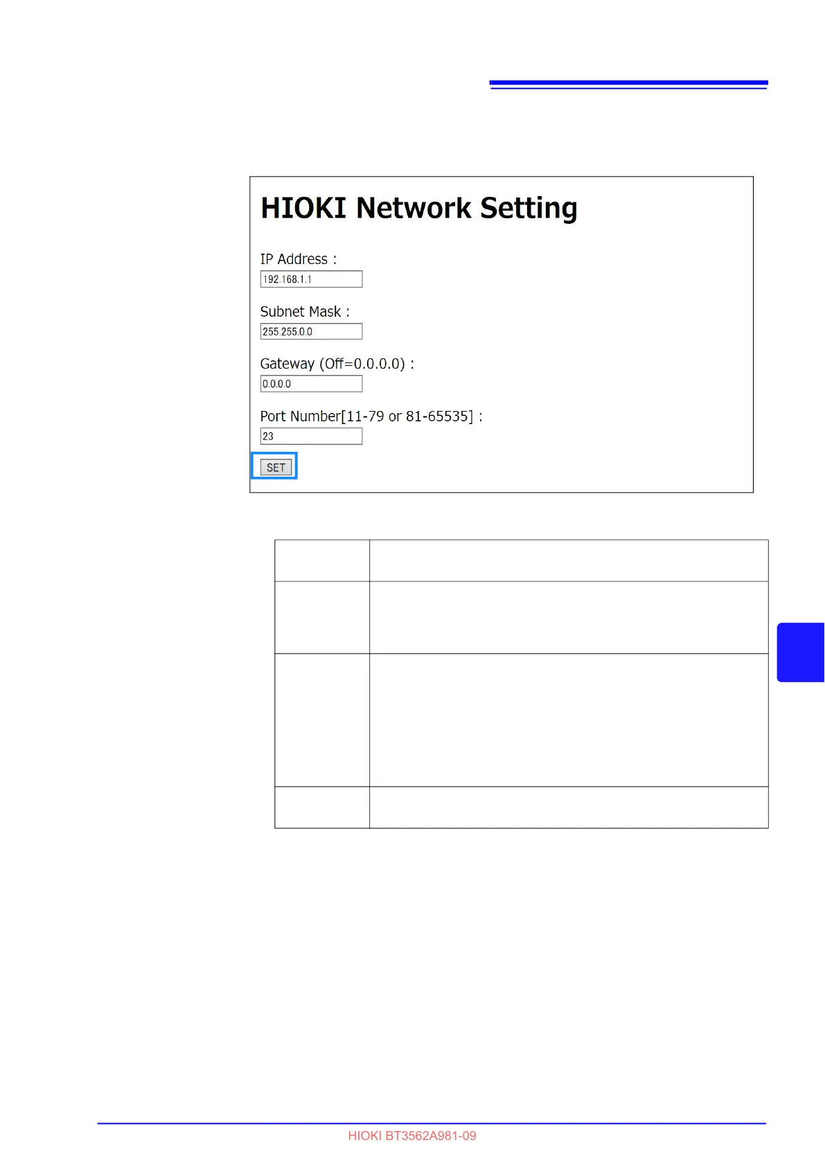 Enter the settings, and then press the [SET] button.