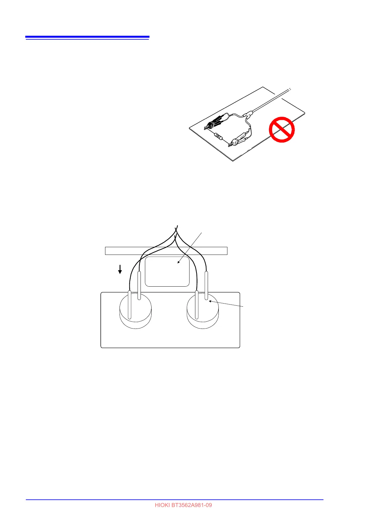 • Do not allow the test leads near metal surfaces. In particular, the lead por-