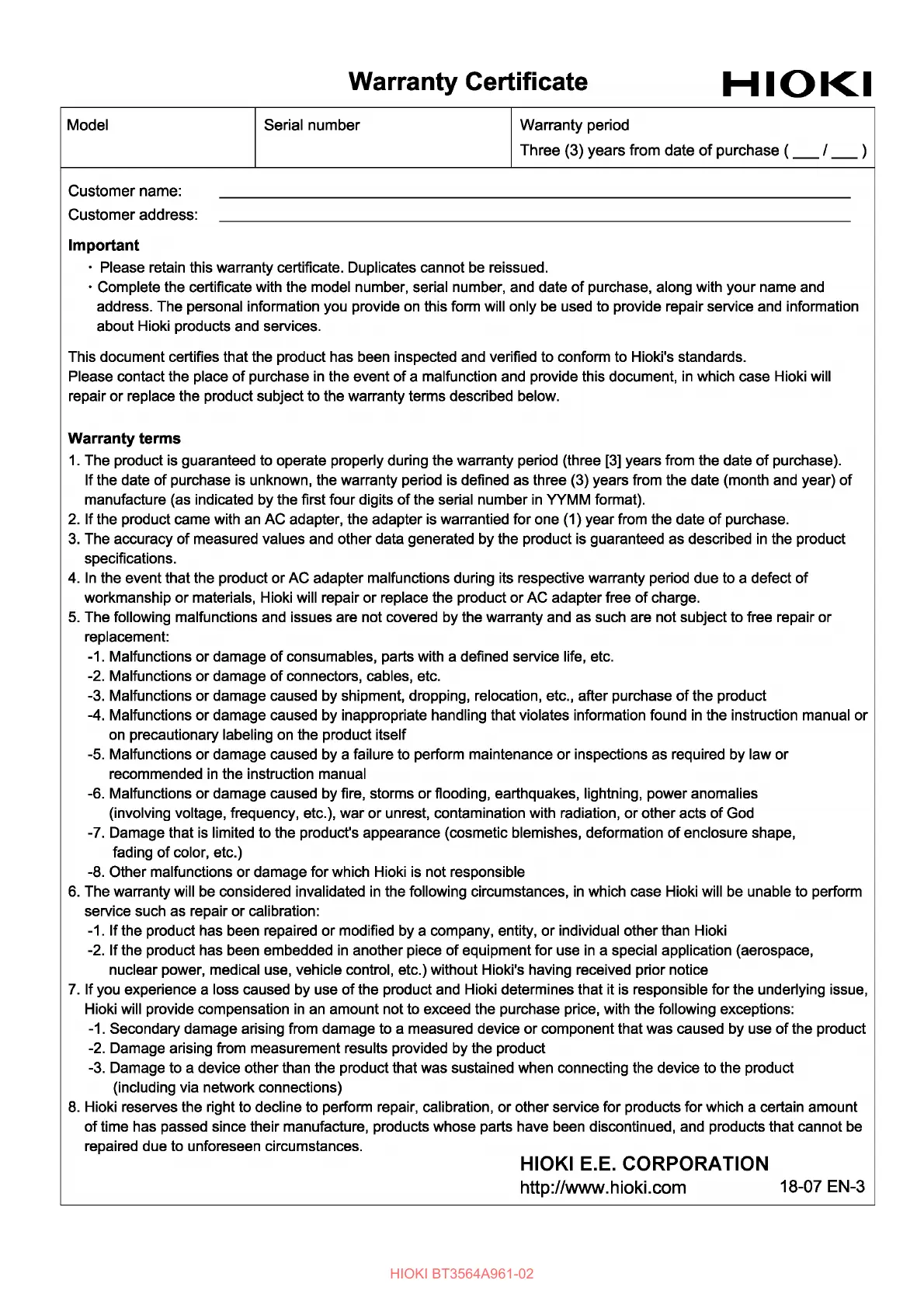 HIOKI BT3564A961-02