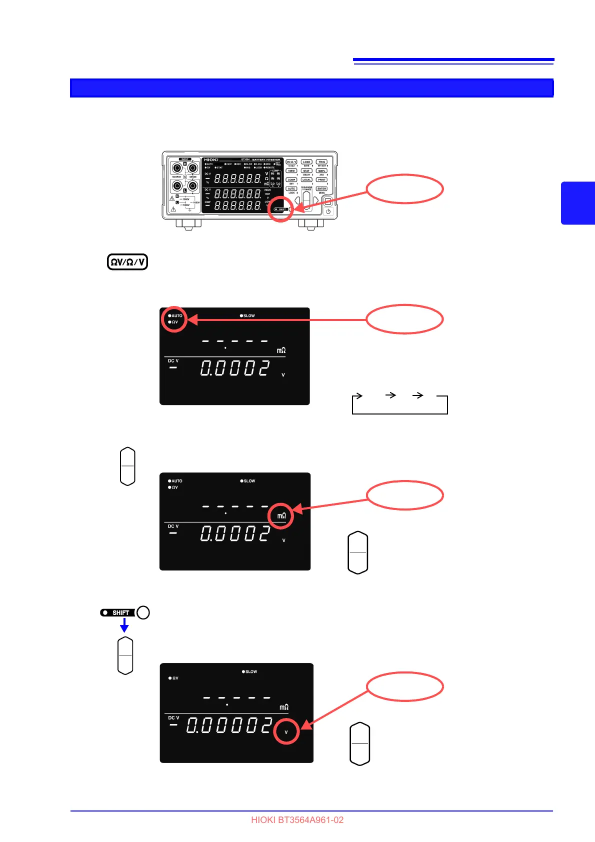 resistance, or V to measure only voltage.
