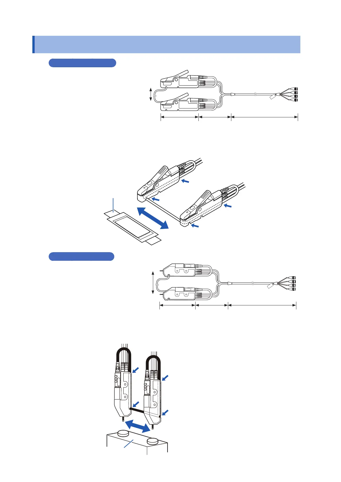 2. Adjust the position of the probes such that the return cable between the probes does not sag, and x by