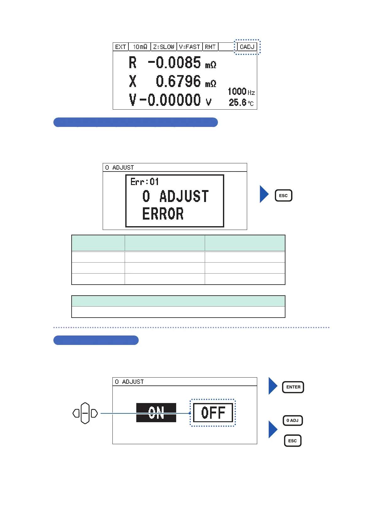 When [0 ADJUST ERROR] appears, the proper adjustment is not performed.
