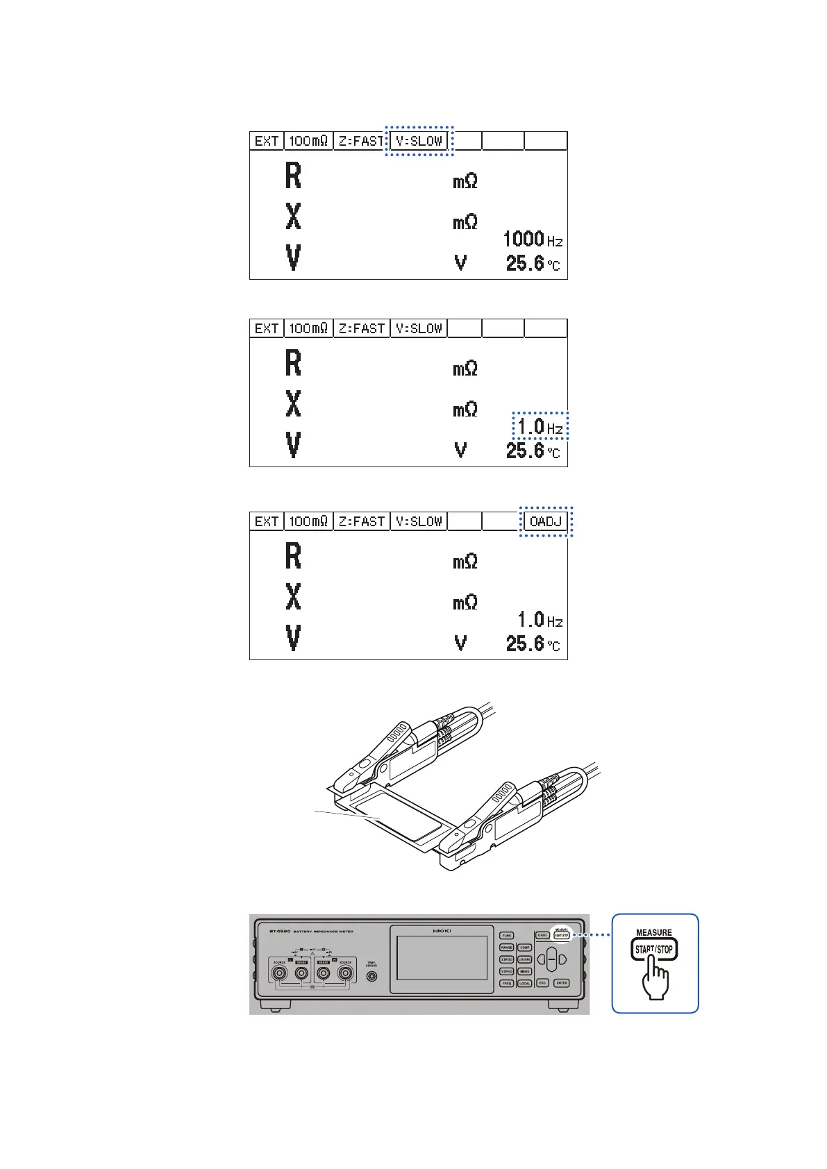 Set the speed of the voltage measurement (V) at [SLOW]. (p. 23)