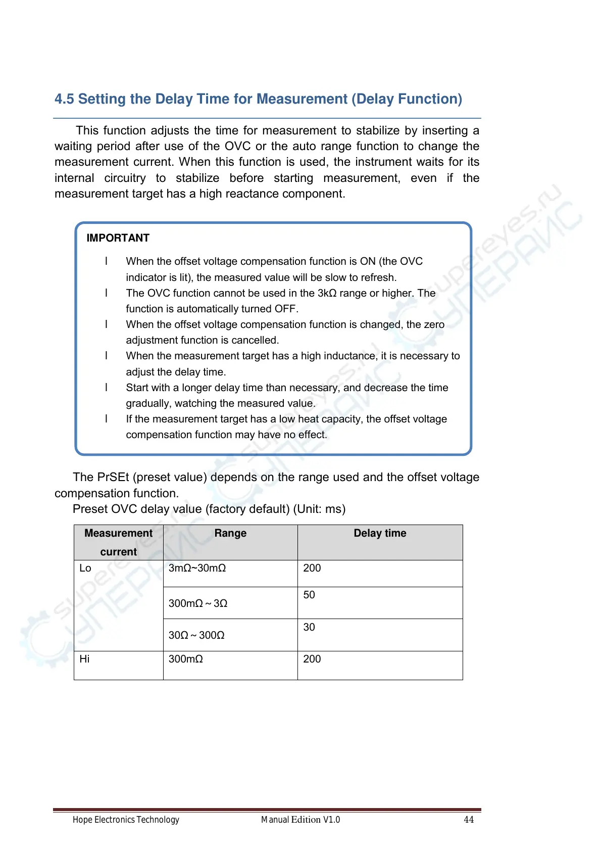 4.5 Setting the Delay Time for Measurement (Delay Function)
