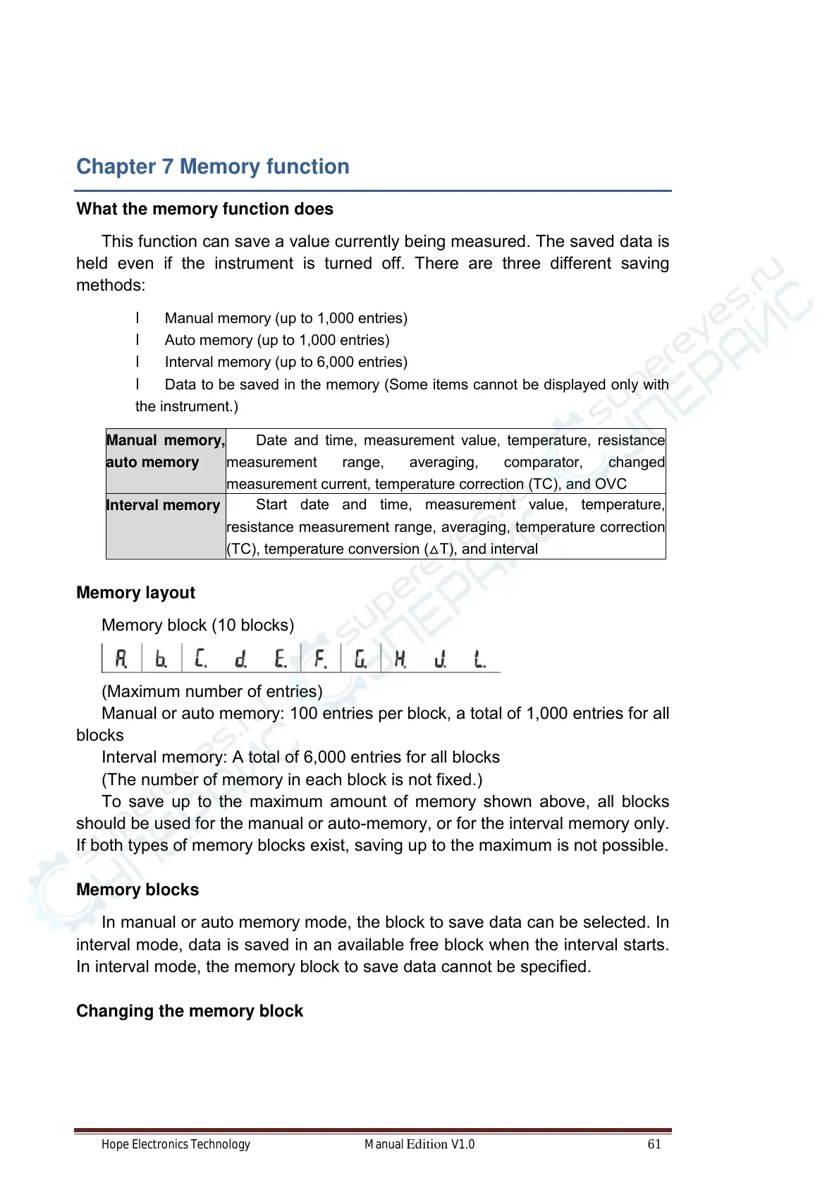 Manual or auto memory: 100 entries per block, a total of 1,000 entries for all