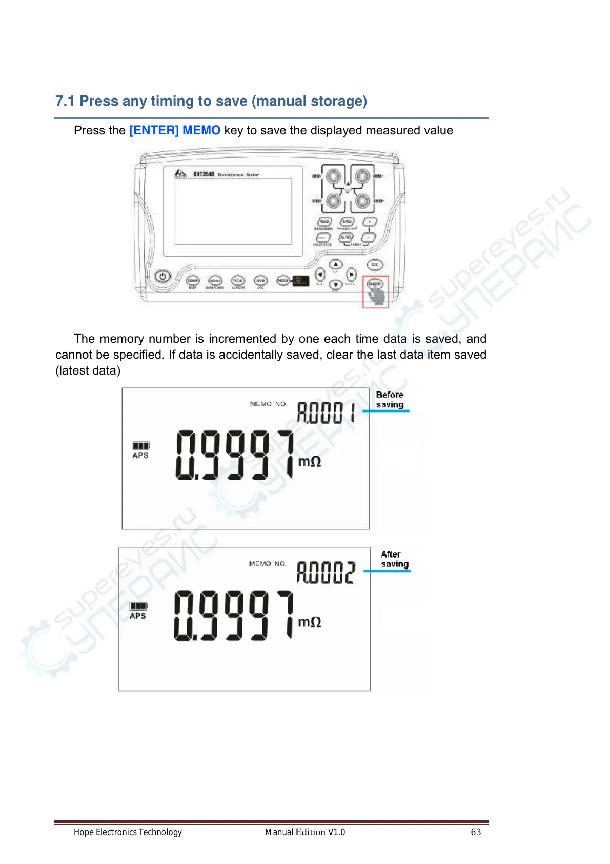 Press the [ENTER] MEMO key to save the displayed measured value