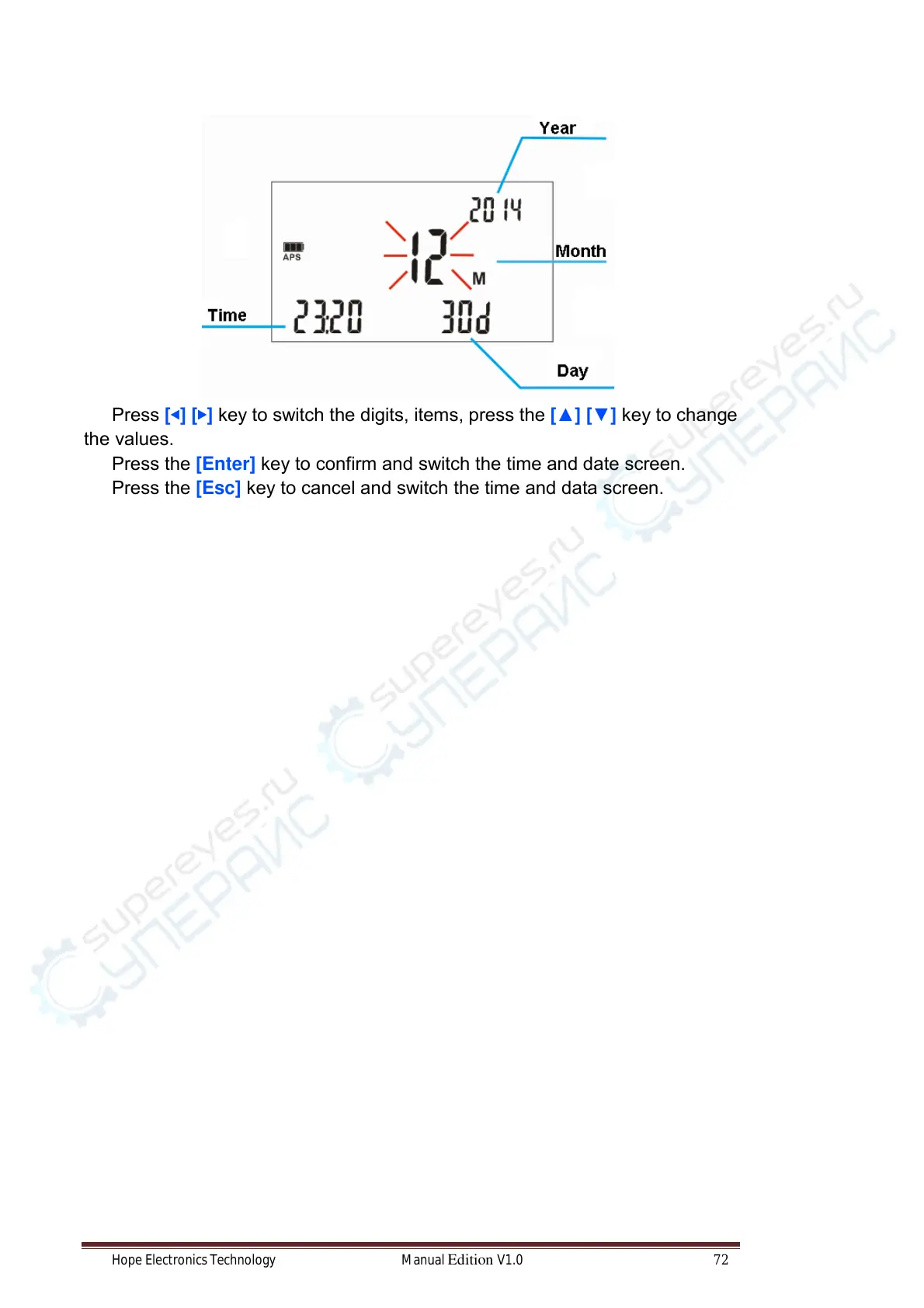 Press the [Esc] key to cancel and switch the time and data screen.