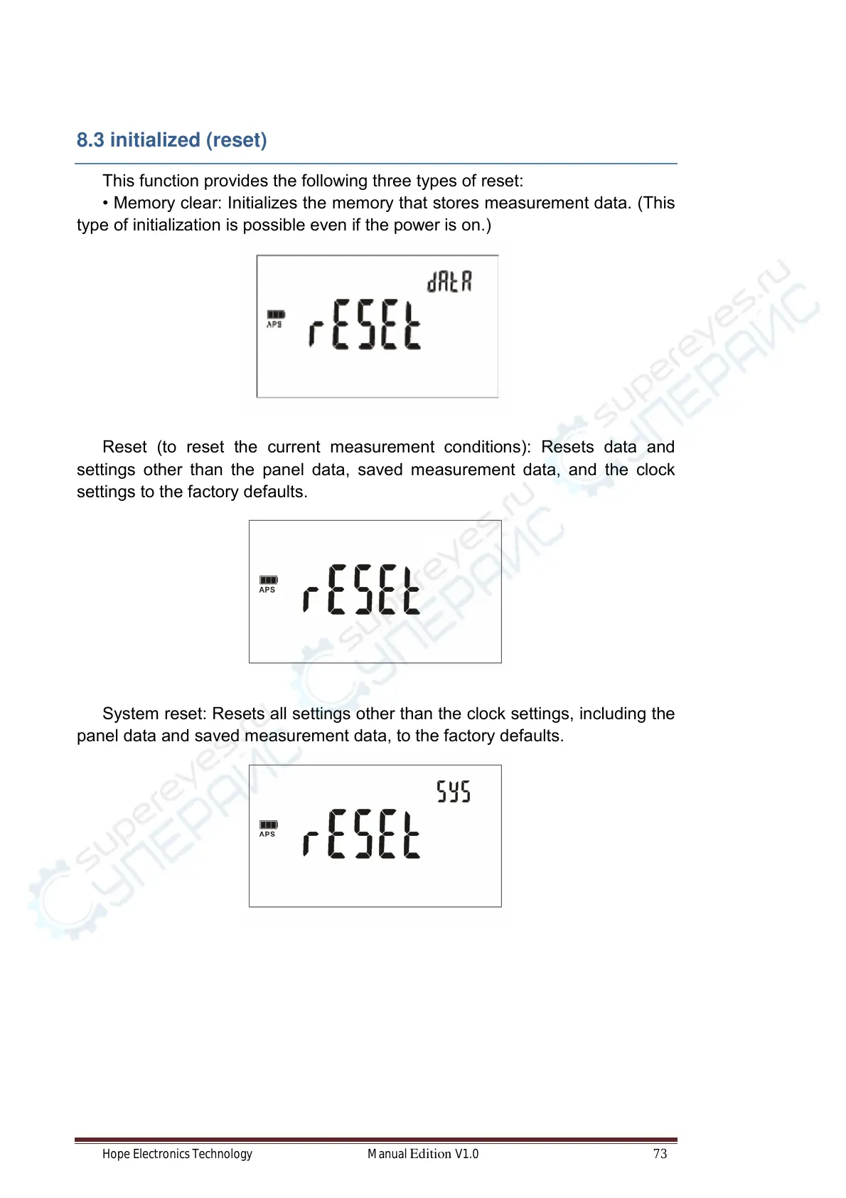 panel data and saved measurement data, to the factory defaults.