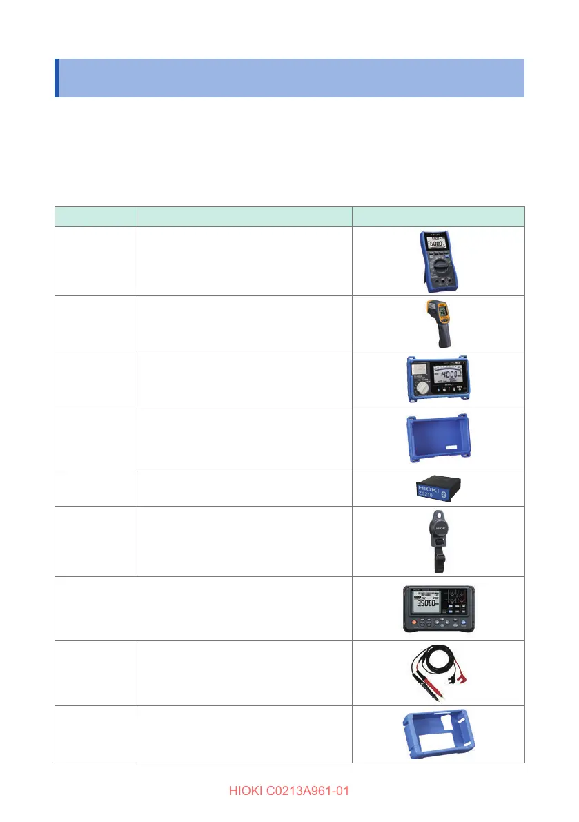 Optional equipment is subject to change with no advance notice. Check Hioki’s